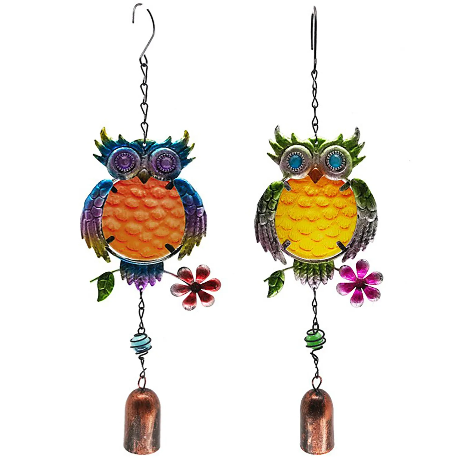 Подвеска-колокольчик из кованого железа в виде совы, креативный декоративный кулон из металла и стекла с рисунком совы, украшение для дома и улицы, сада