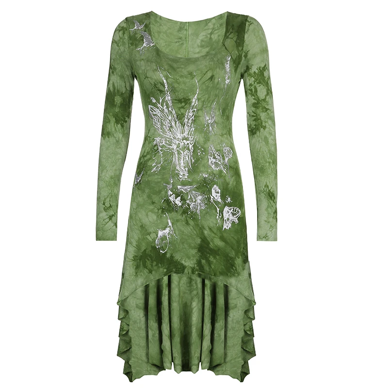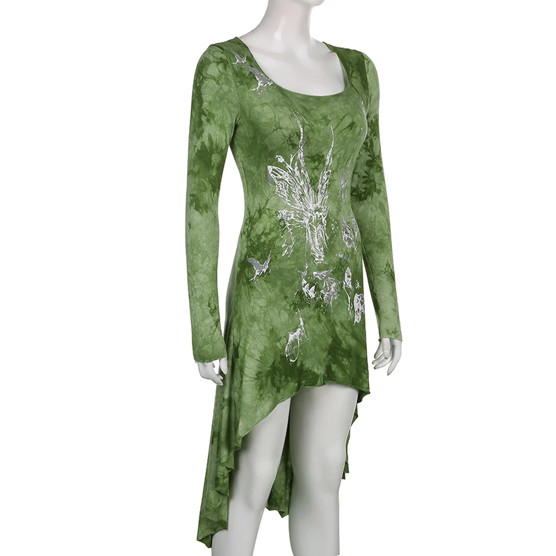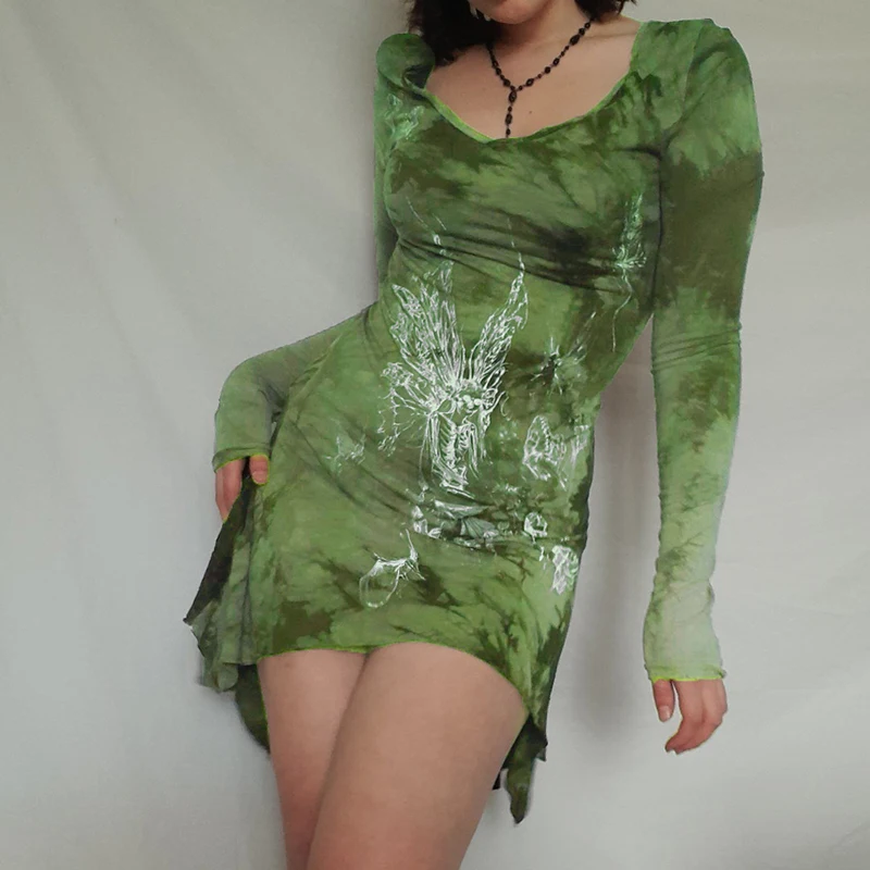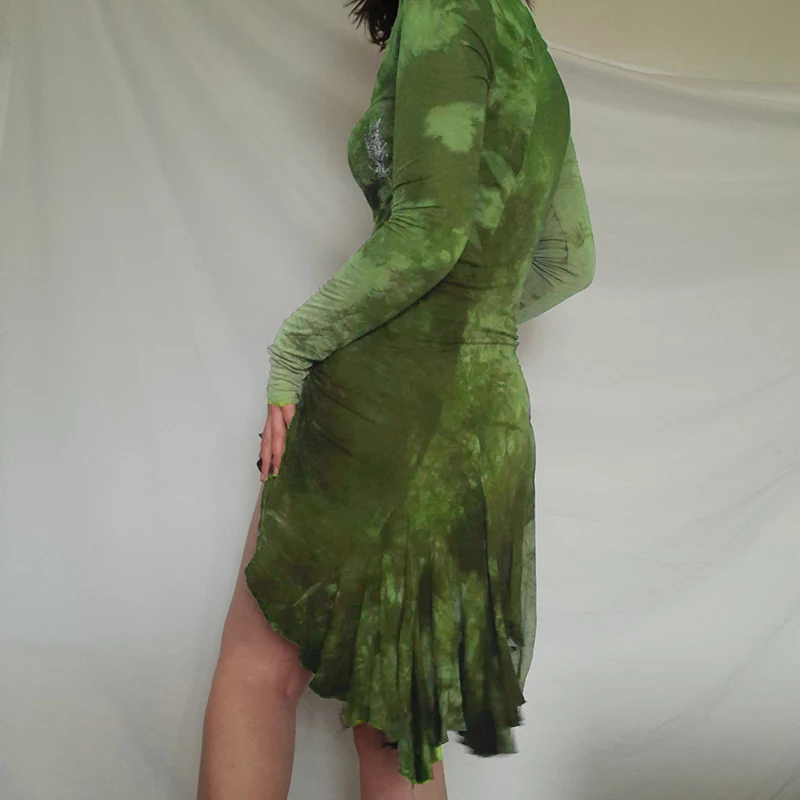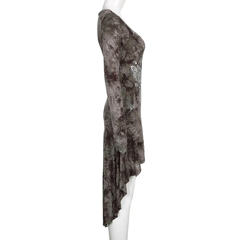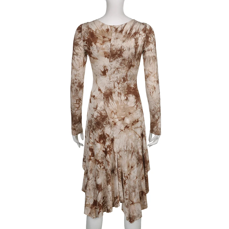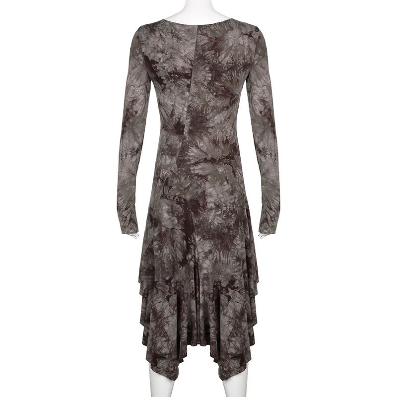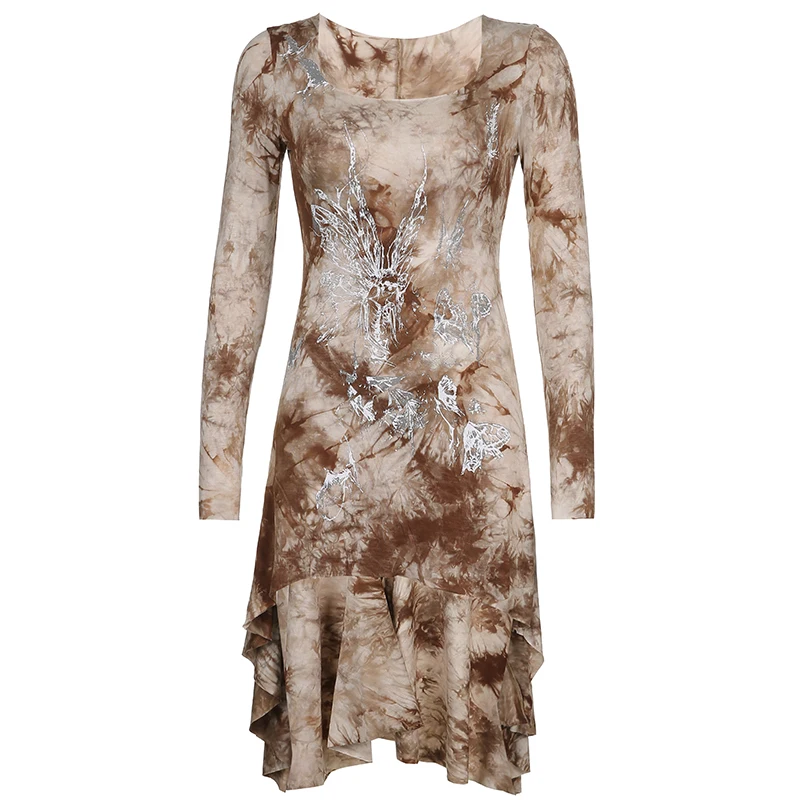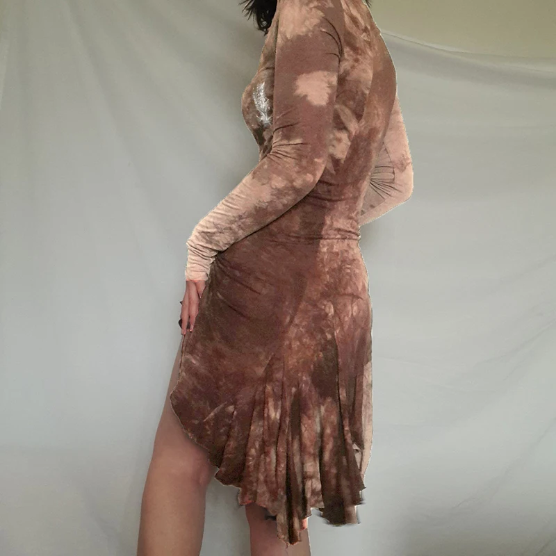 Darlingaga Grunge Fairycore коричневое облегающее платье с галстуком женское платье с длинным рукавом темное академическое асимметричное платье-рубашка винтажная одежда