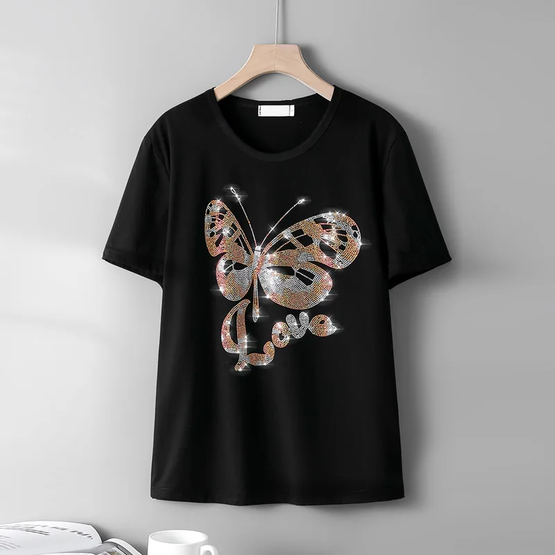 Летняя дышащая новая мода с короткими рукавами футболка женская личность бабочка горячий ромбовидный узор свободная повседневная женская блузка