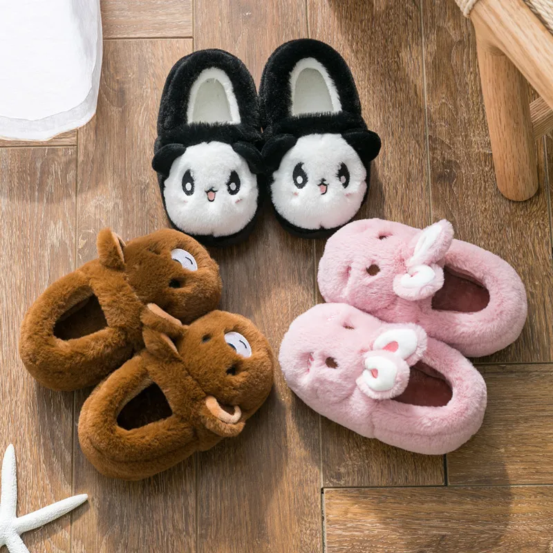 Тапочки домашние детские, с изображением панды, теплые, для мальчиков, зима обувь флип-флоп для девочек
