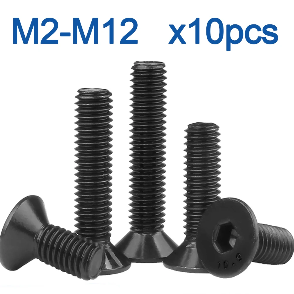 Болты с плоской потайной головкой, 10 шт.лот, болты из углеродистой стали M2 M2.5 M3 M4 M5 M6 M8 M10 M12, машинные винты DIN7991