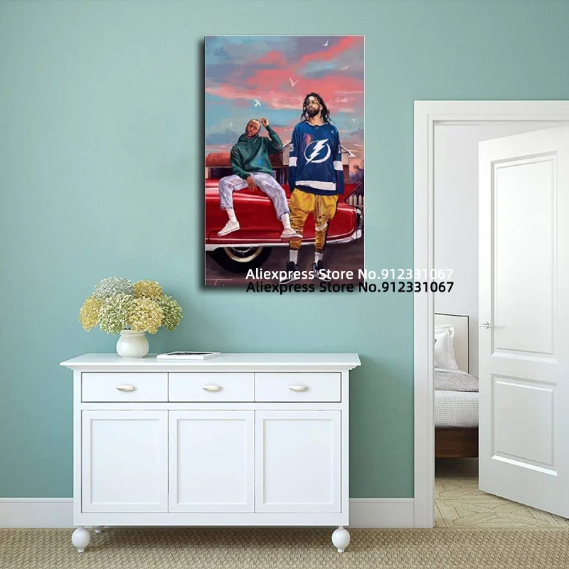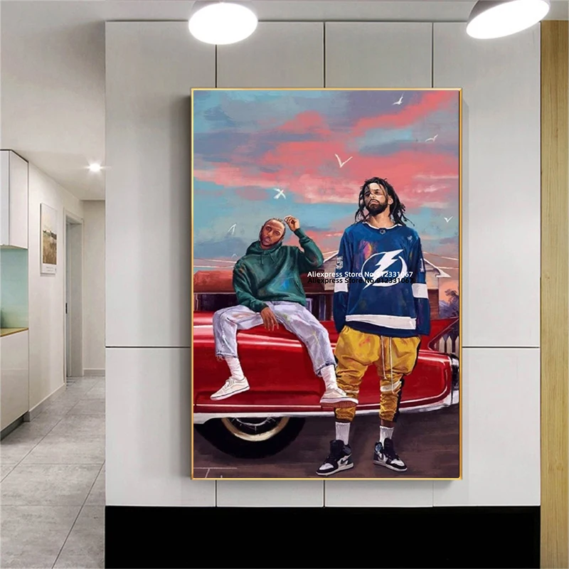 Знаменитый Рэпер Хип-хоп Музыка Кендрик Ламар и Джей Коул искусство стен Холст плакат домашний декор
