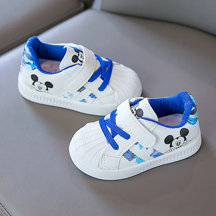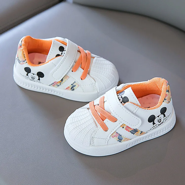 Кроссовки Детские с рисунком Микки Мауса, повседневная обувь для школьников, плоская подошва, Мультяшные белые, для мальчиков и девочек