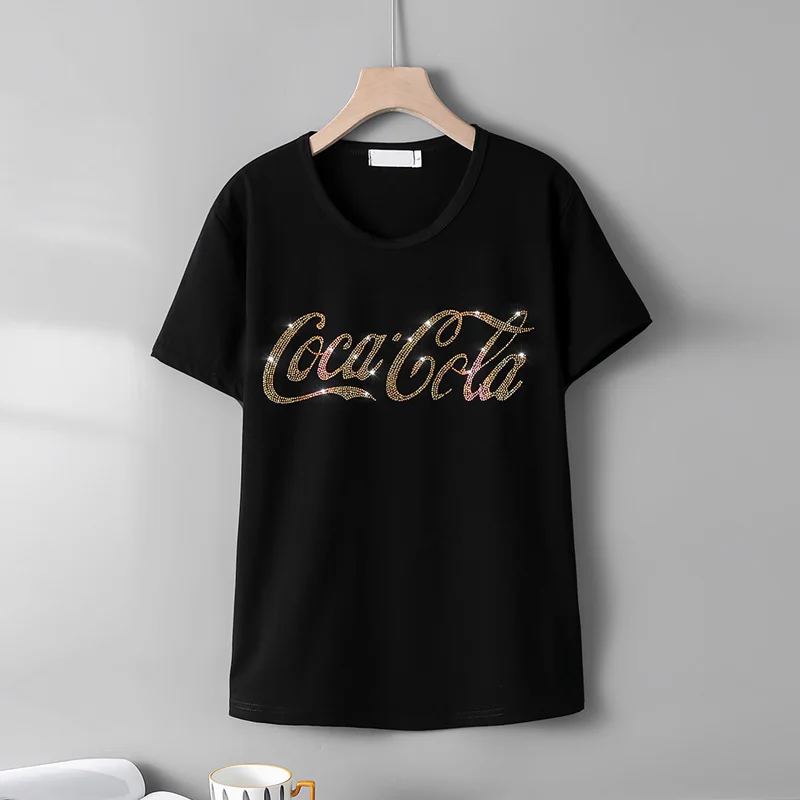 Крутые летние новые модные футболки с короткими рукавами, женские креативные футболки с буквенным узором, горячие бриллианты, свободные повседневные женские топы с круглым вырезом