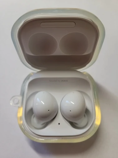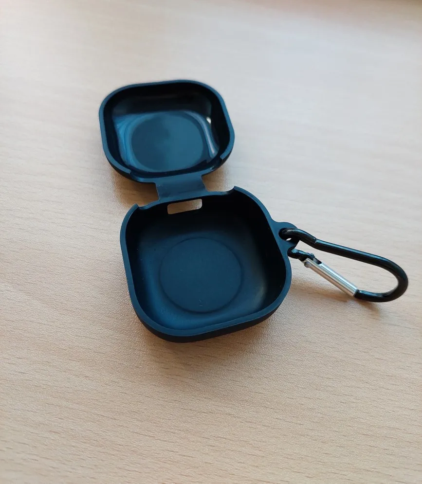 Это тонкий силиконовый чехол, который неправильно выровнен, имеет плохо установленный разъем для зарядного порта USB C и делает его труднее открыть Galaxy Buds 2 (2022).