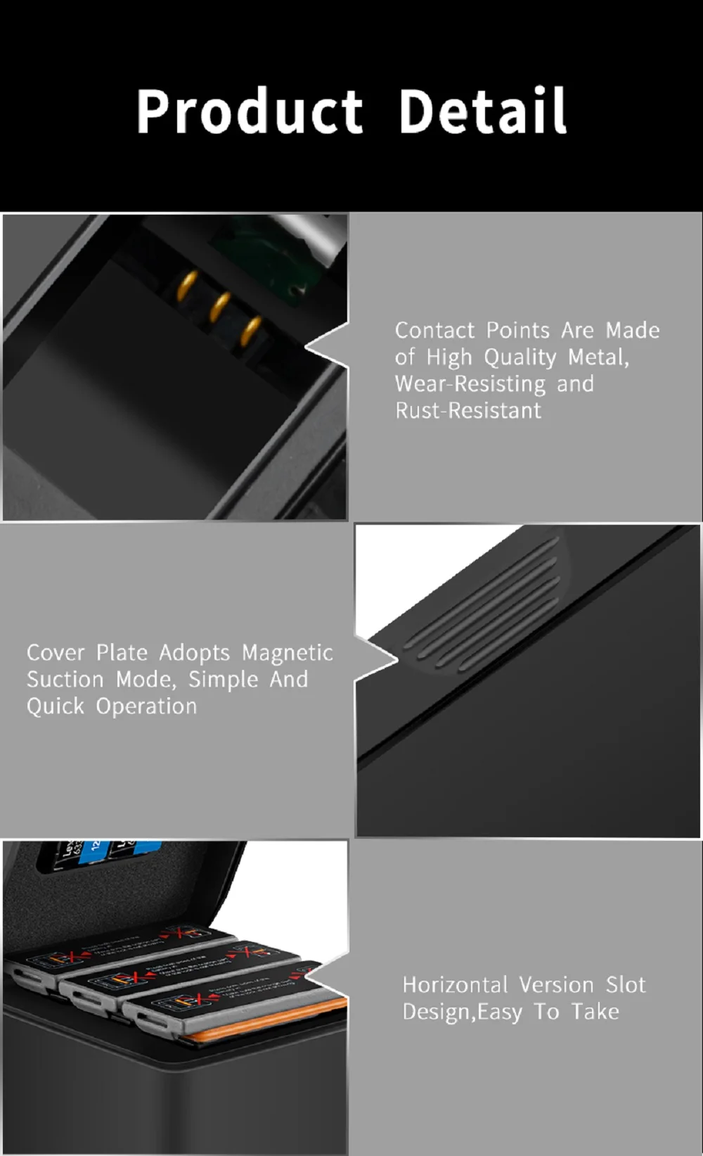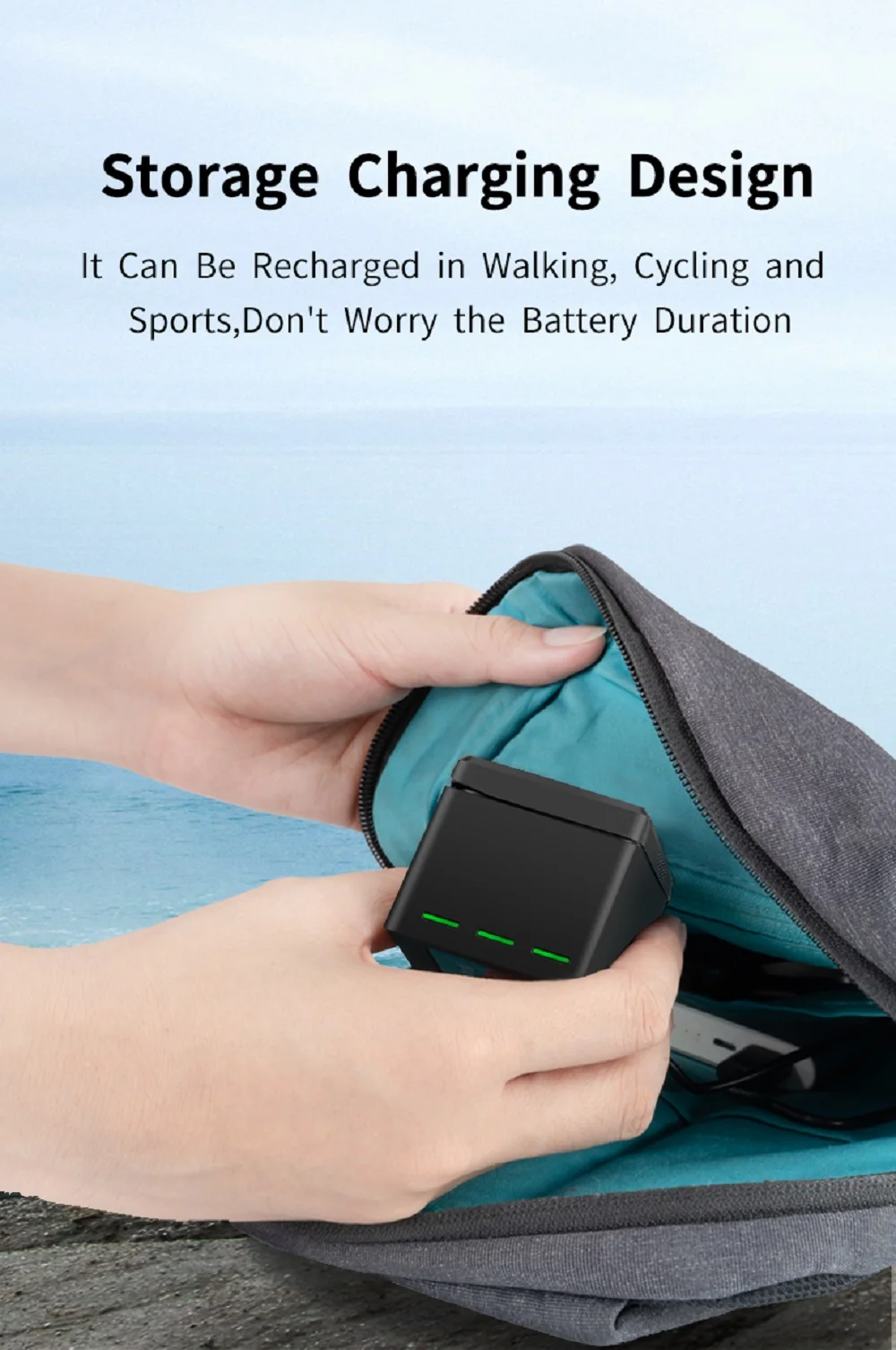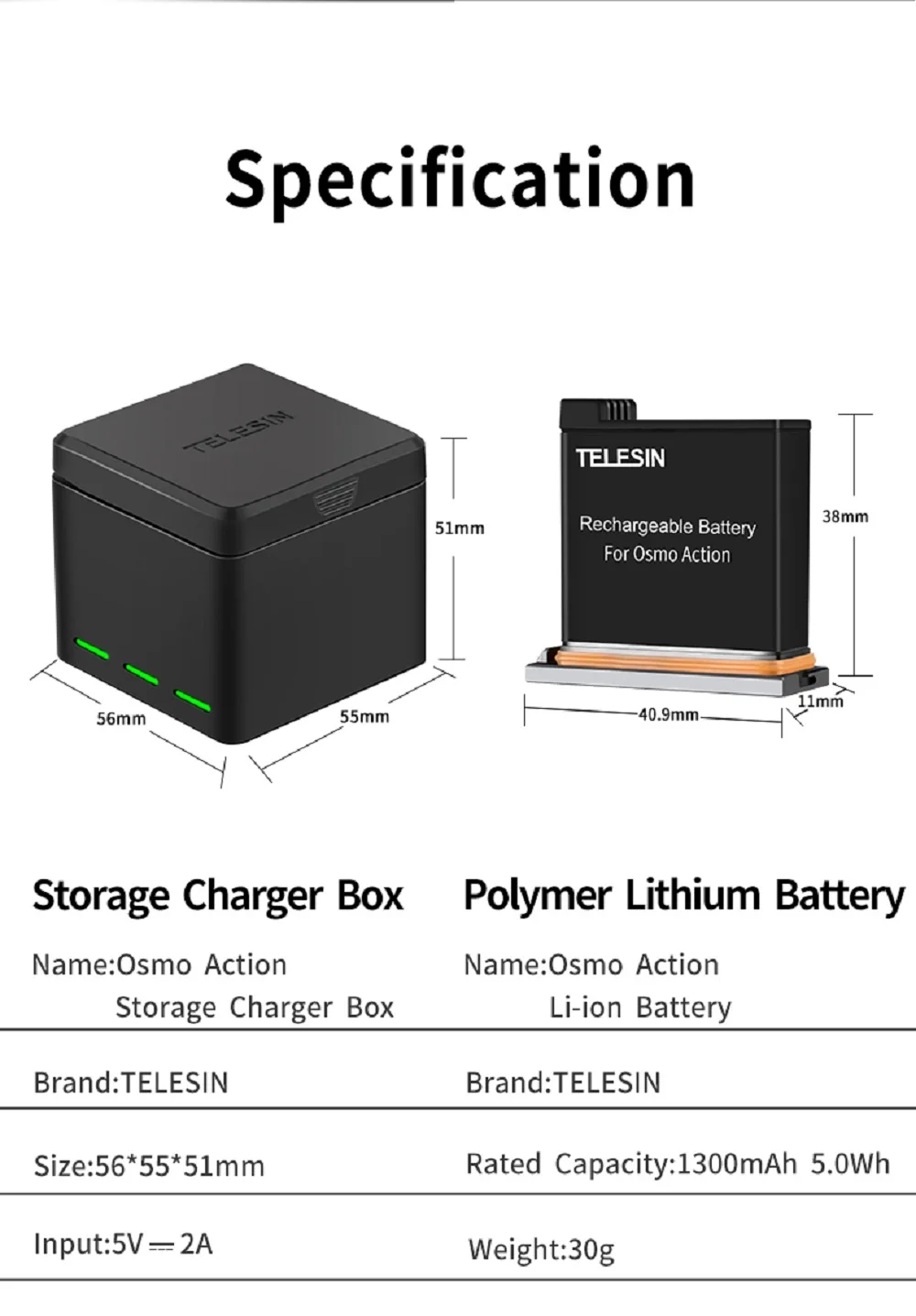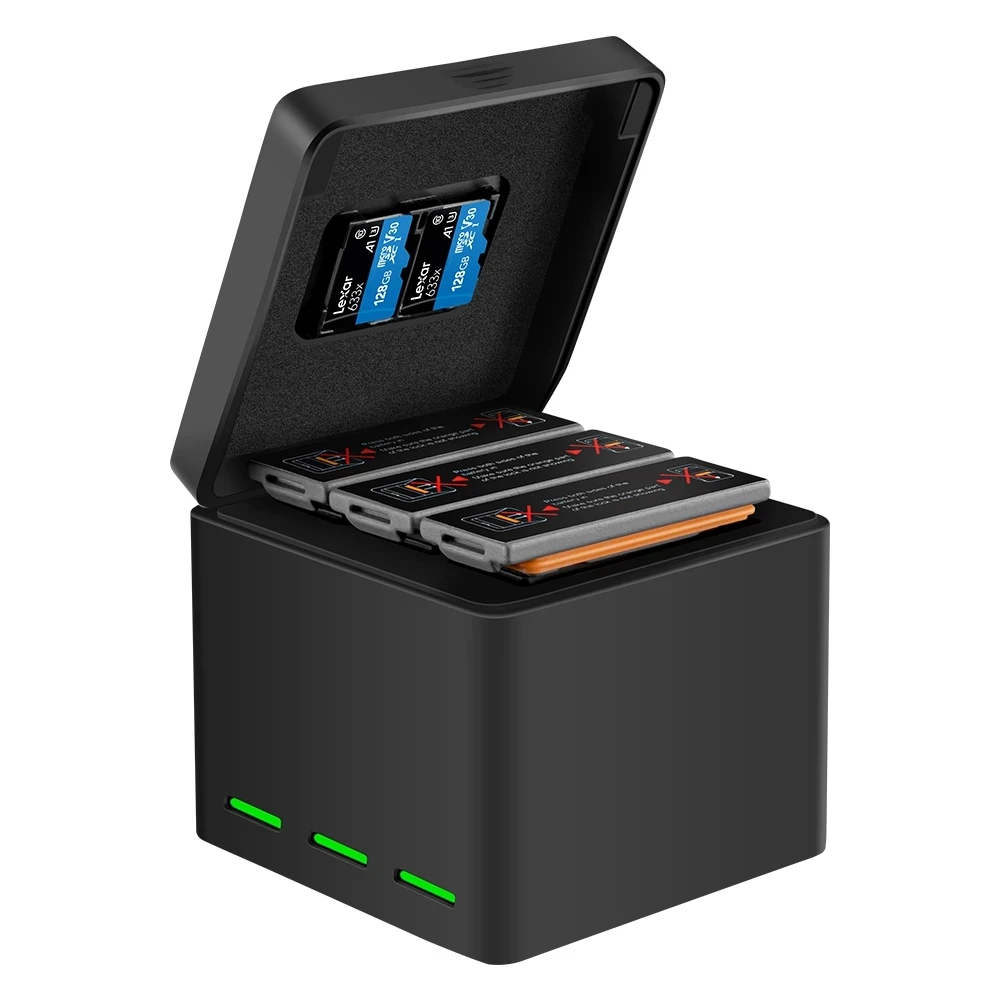 Зарядное устройство TELESIN с 3 слотами для аккумуляторов, зарядное устройство с USB, контейнер для хранения 2 TF-карт для экшн-камер DJI Osmo, аксессуары