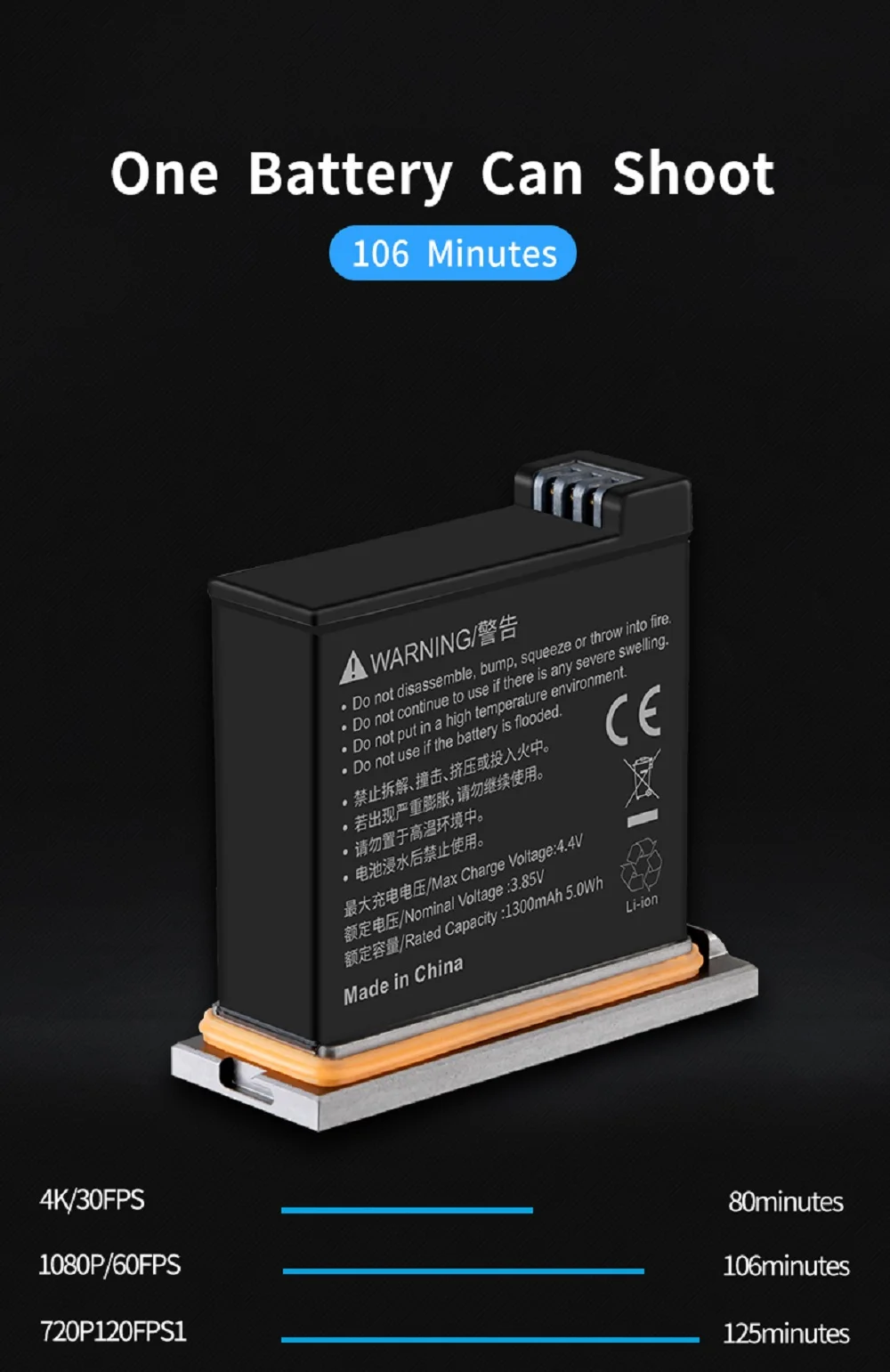 Навсегда заряжайте аккумулятор не только дома, но и в автомобиле. С общим входом micro-USB вы можете зарядить аккумулятор везде и когда угодно. У вас всегда будет рабочая камера, чтобы запечатлеть все важные и счастливые моменты в ваших поездках, никогда не беспокоясь о том, что у вас заканчивается питание. Идеально подходит для путешествий.