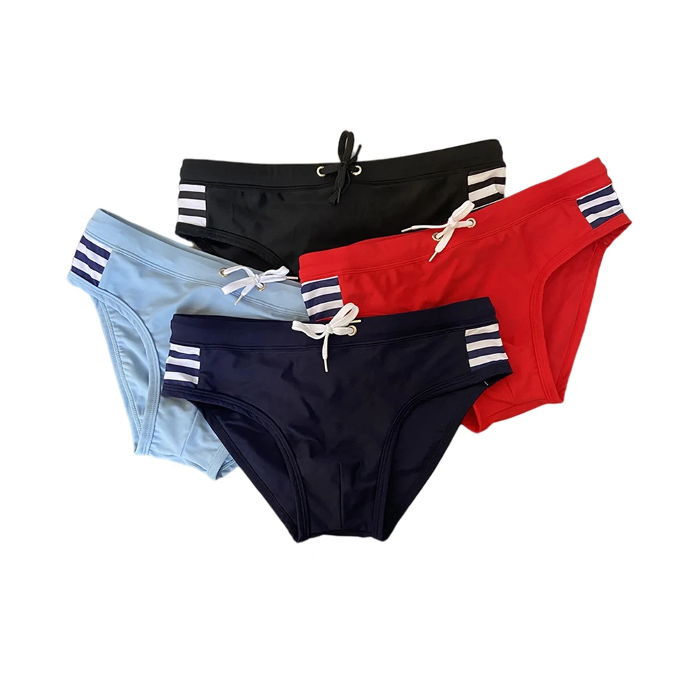 Сексуальный купальный костюм пуш-ап для мужчин в полоску, летний купальный костюм с низкой талией, спортивные пляжные плавки для серфинга, мужские быстросохнущие плавки для геев