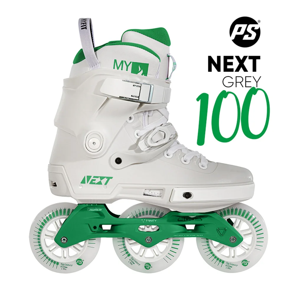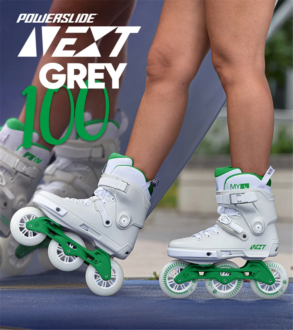 100% Оригинальные роликовые коньки Powerslide с оправой NEXT Trinity, 3*100 мм, 4*80 мм, серо-зеленые уличные гоночные ролики, без патинирования
