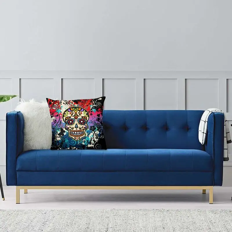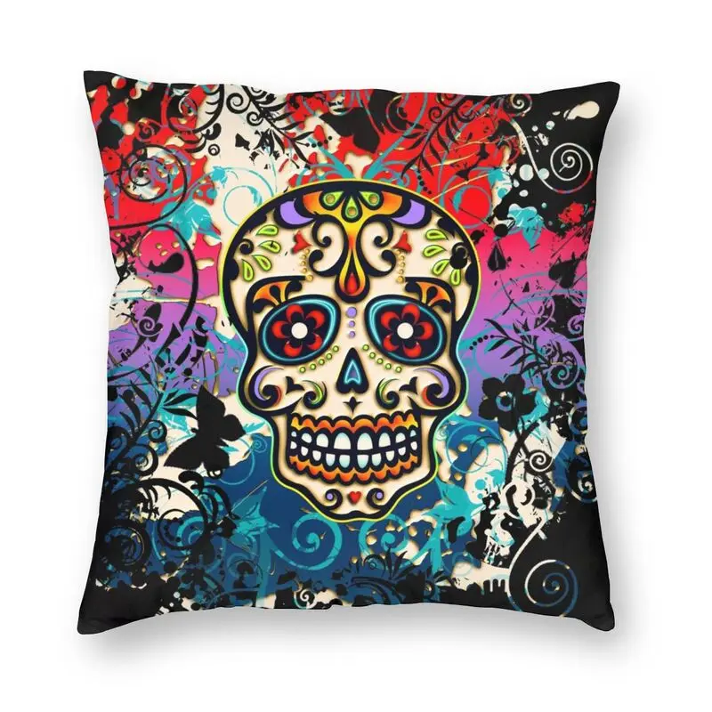 Квадратная наволочка с мексиканским сахарным черепом на Хэллоуин, домашний декор, День мертвых дней мертвых, диванные подушки, диванная подушка