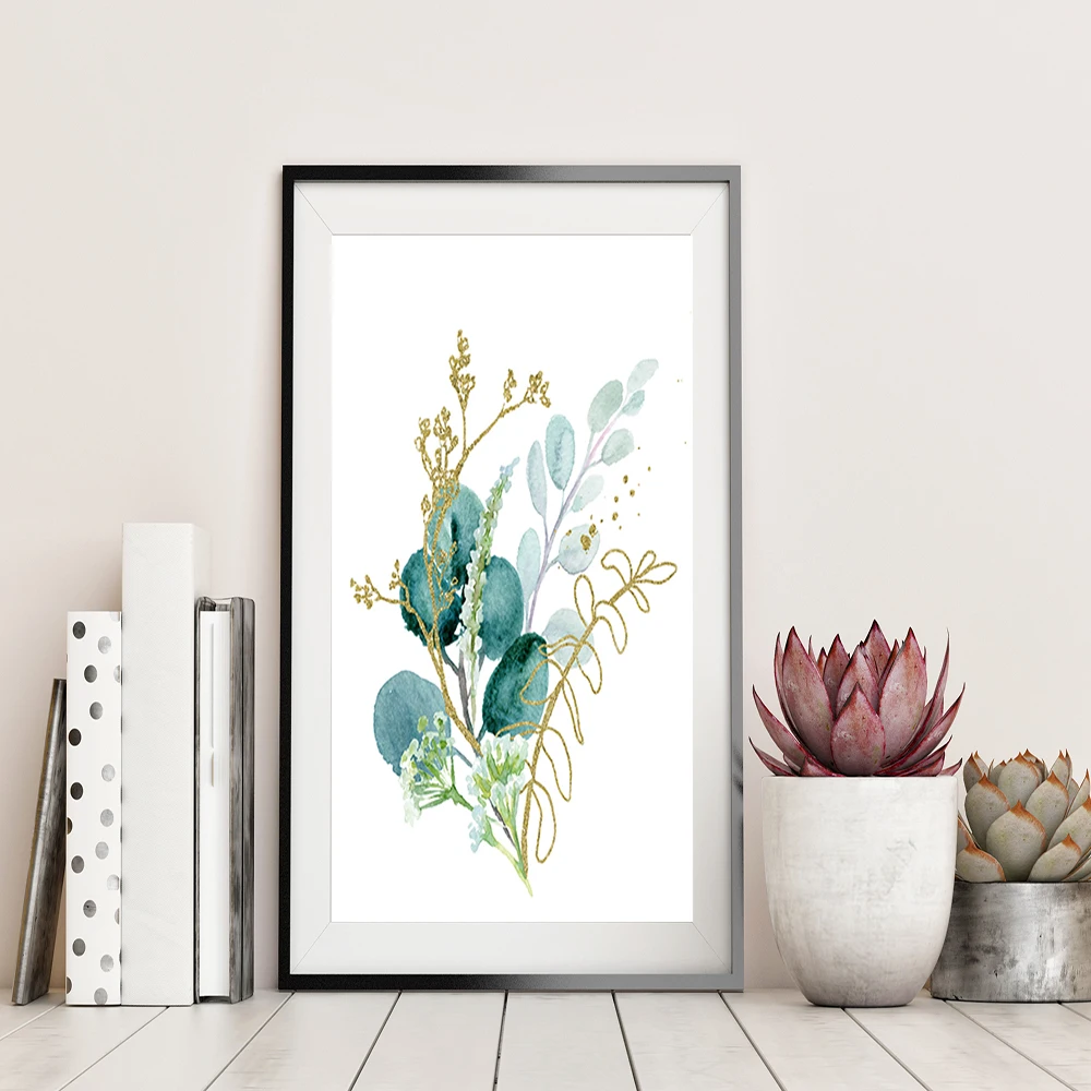 Абстрактная Картина на холсте с золотыми листьями, современные плак...