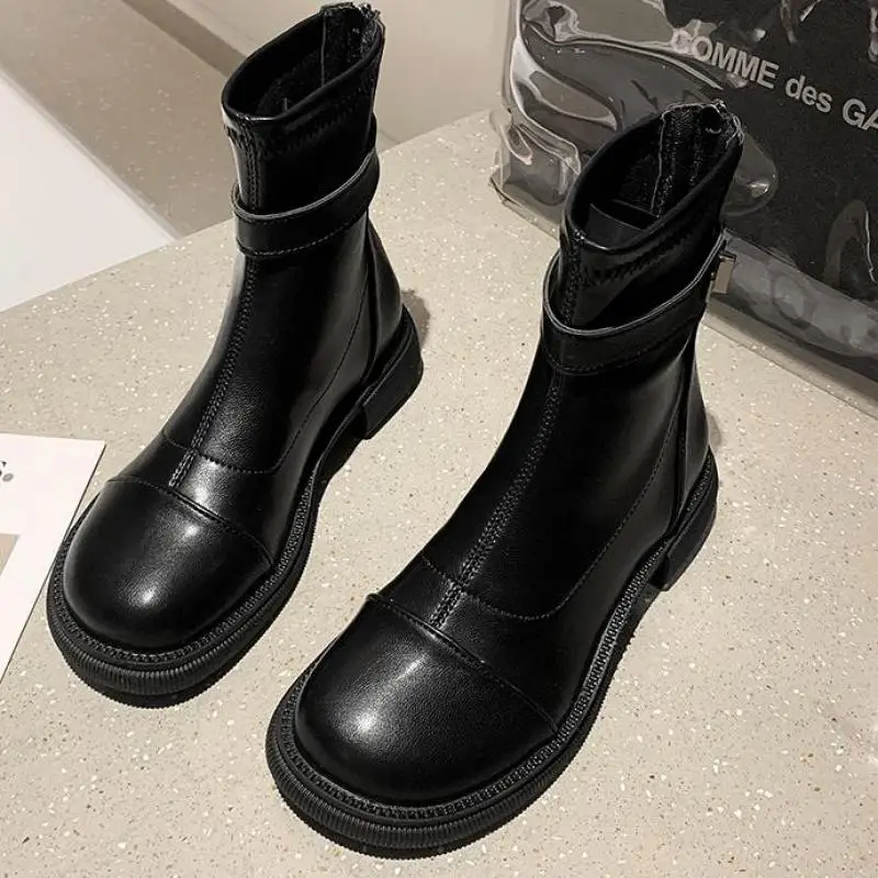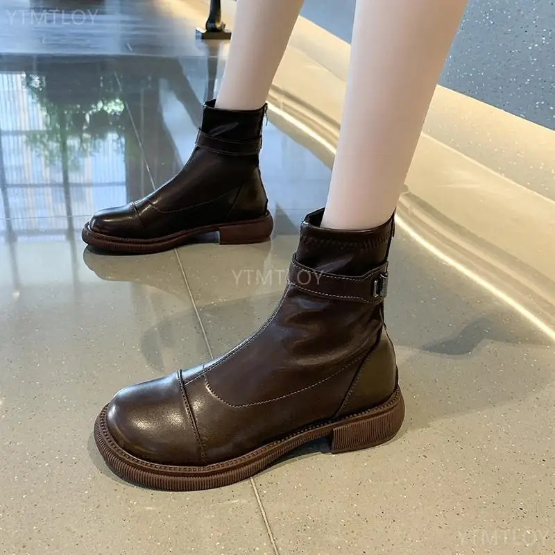 Женские кожаные ботинки челси на молнии, с круглым носком