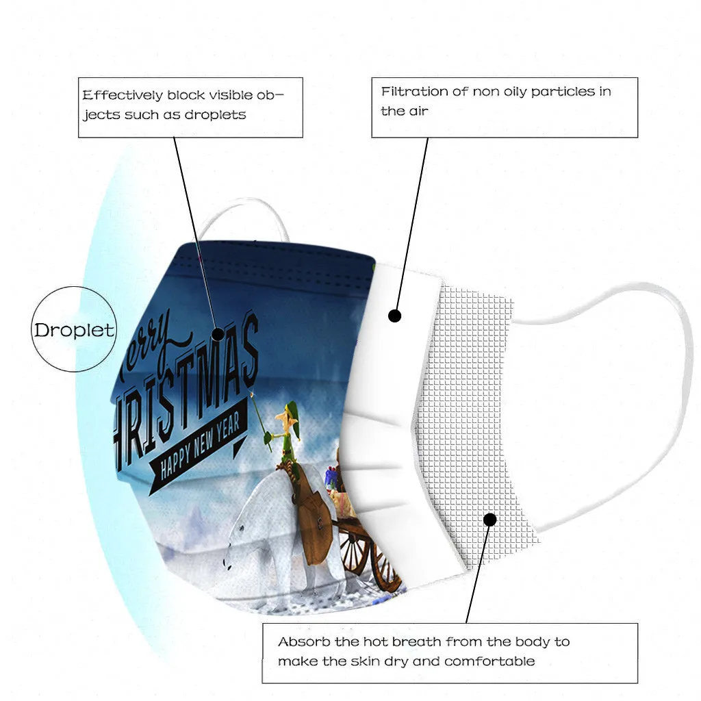 В 3 слоя Нетканая одноразовая маска изготовлена из 3 слоев нетканого материала, Безопасен и безопасен для использования. Дышащий материал и милый Узоры, которые делают его полезным и модным. Специальный 3 слоя из нетканого материала Дизайн, обеспечивает некоторую защиту от пыли, автомобильных выхлопных газов, Пыльца и т. д. эластичная Ушная петля, легко носить и не давит на уши. Маникюрный салон или любые другие области, где может потребоваться защита