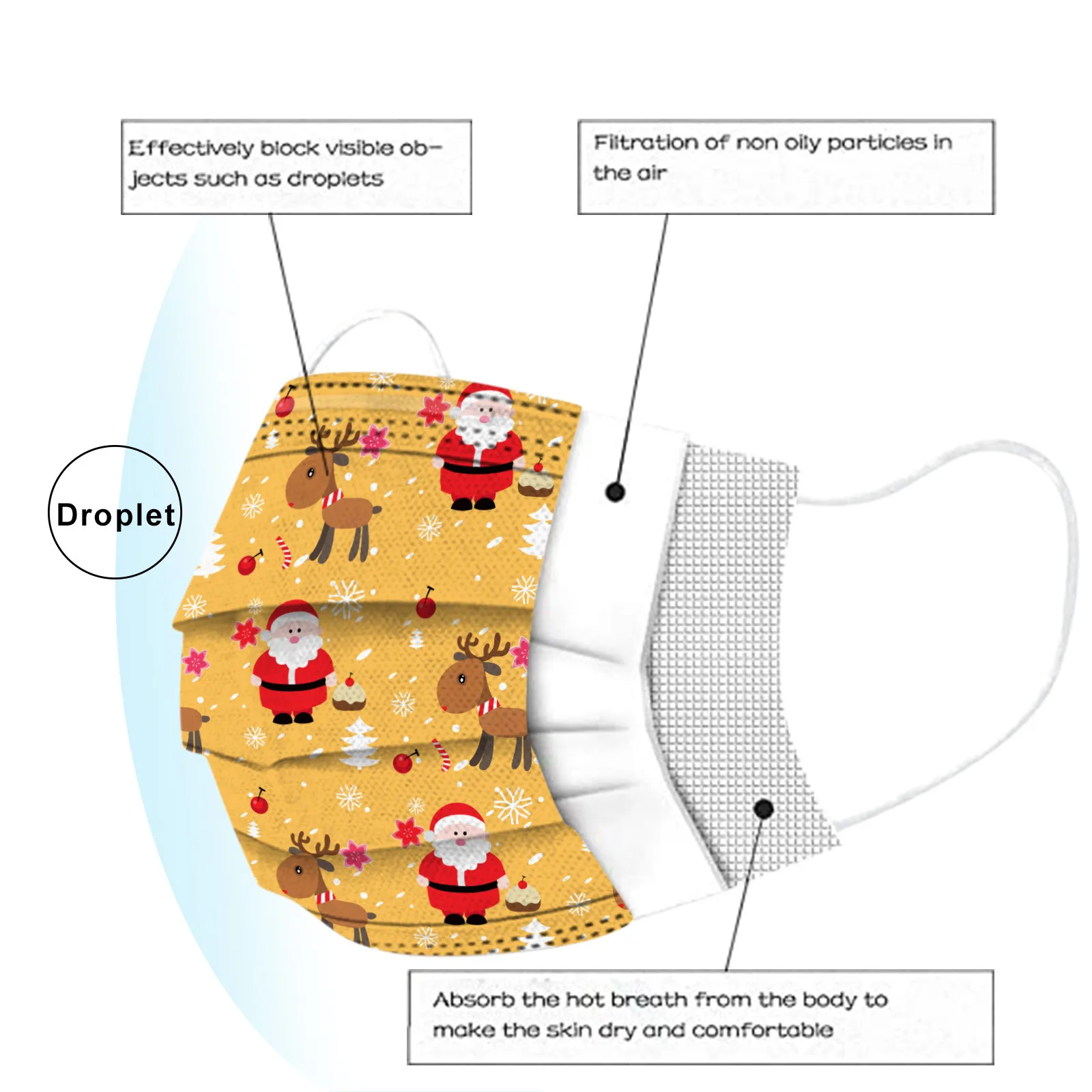 В 3 слоя Нетканая одноразовая маска изготовлена из 3 слоев нетканого материала, Безопасен и безопасен для использования. Дышащий материал и милый Узоры, которые делают его полезным и модным. Специальный 3 слоя из нетканого материала Дизайн, обеспечивает некоторую защиту от пыли, автомобильных выхлопных газов, Пыльца и т. д. эластичная Ушная петля, легко носить и не давит на уши. Маникюрный салон или любые другие области, где может потребоваться защита