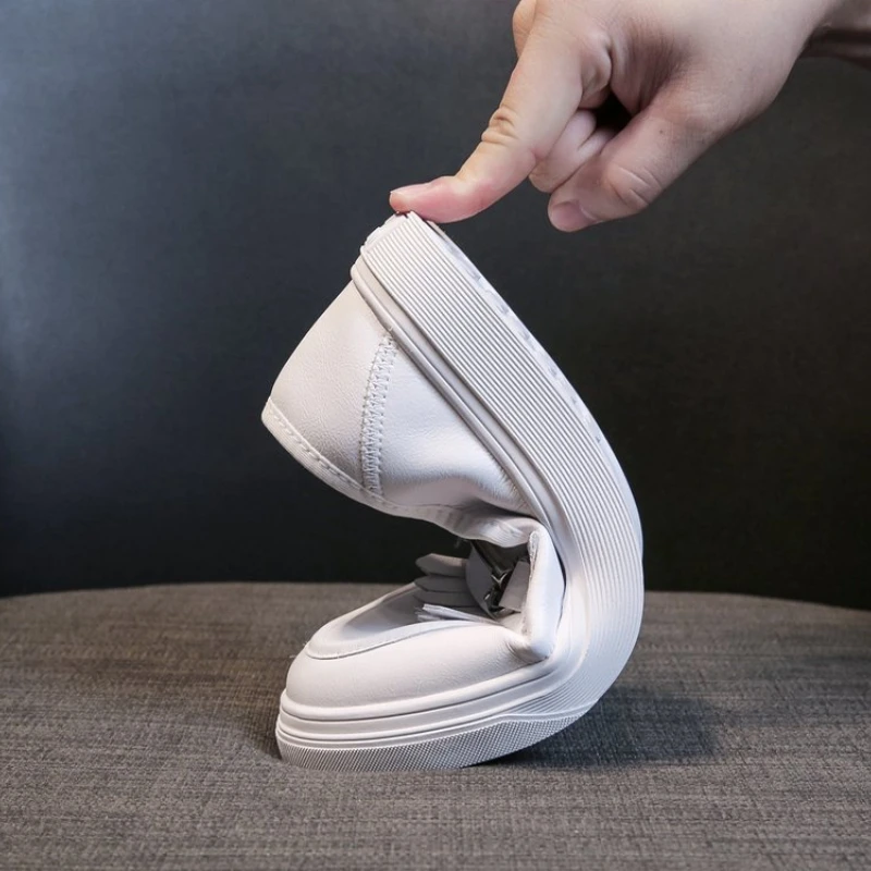 Универсальные туфли на толстой подошве в Корейском стиле с бахромой и металлической цепочкой маленькие белые удобные повседневные женские спортивные туфли на плоской подошве