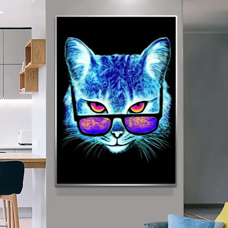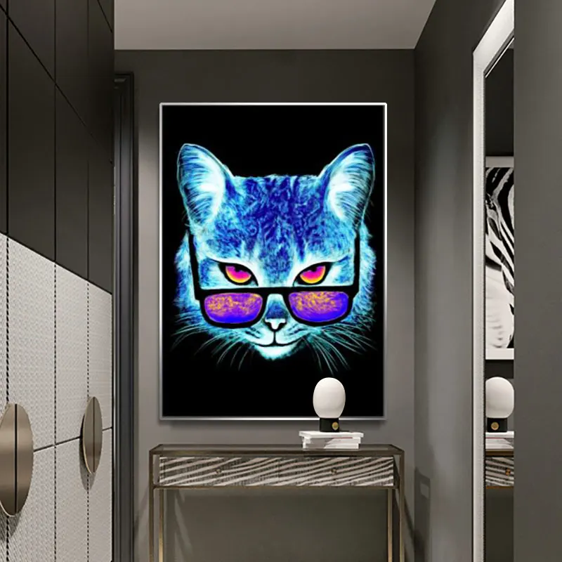 Картина на холсте с изображением милого кота в очках, Настенная картина художественные плакаты и принты, изображение животного на стене для детской комнаты, украшение для дома