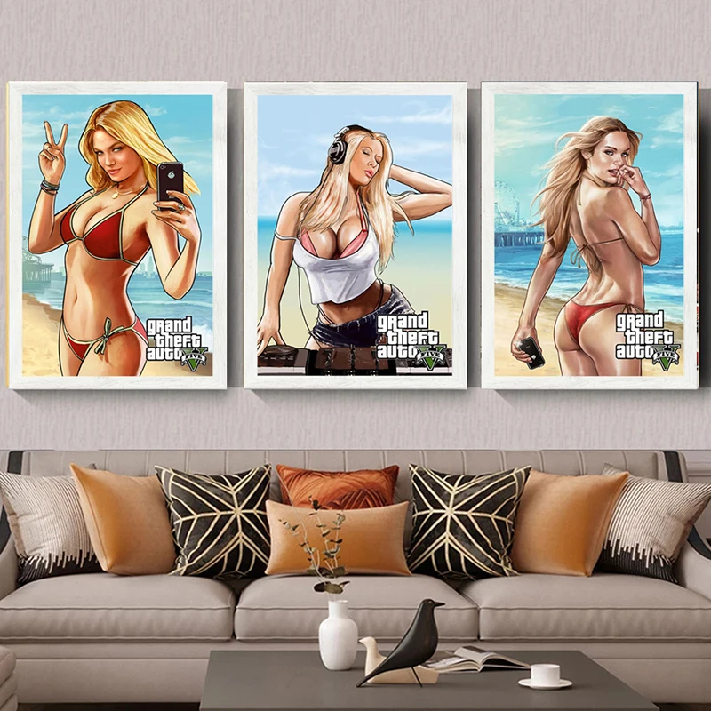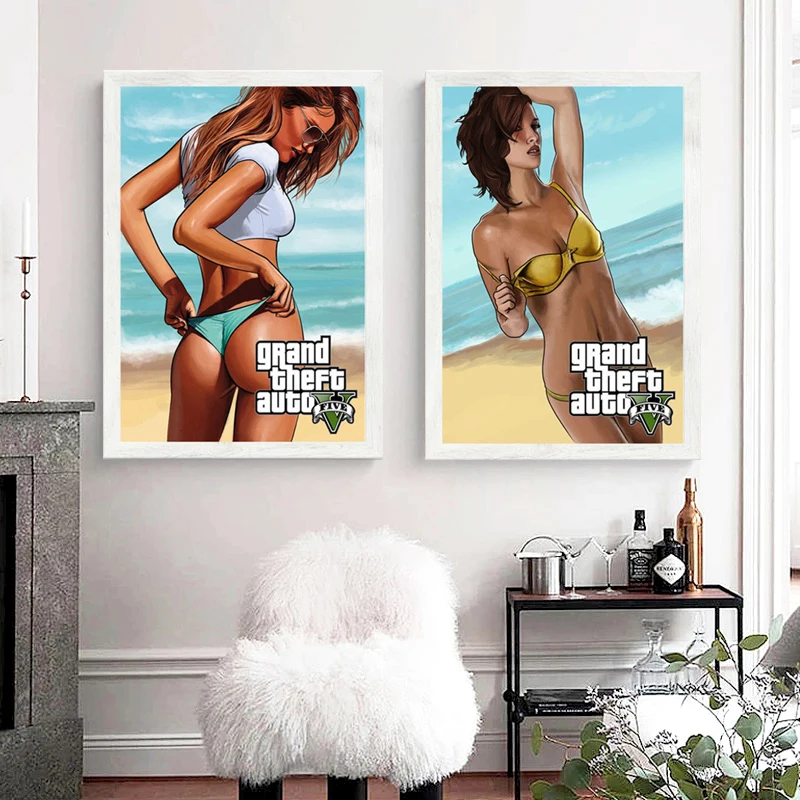 Популярный винтажный Чехол для игр Grand Theft Auto 5 бикини девушка GTA видео настенное искусство холст для Гостиной картины Спальня украшение для дома
