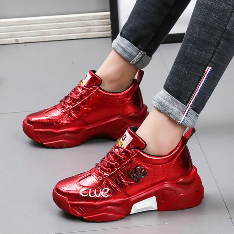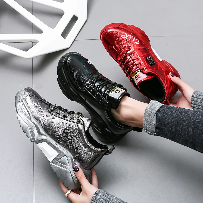 Новинка 2022, женские дизайнерские кроссовки на массивной подошве, на шнуровке, резиновая водонепроницаемая Спортивная обувь на платформе для бега, черные, серебристые, красные женские кроссовки большого размера