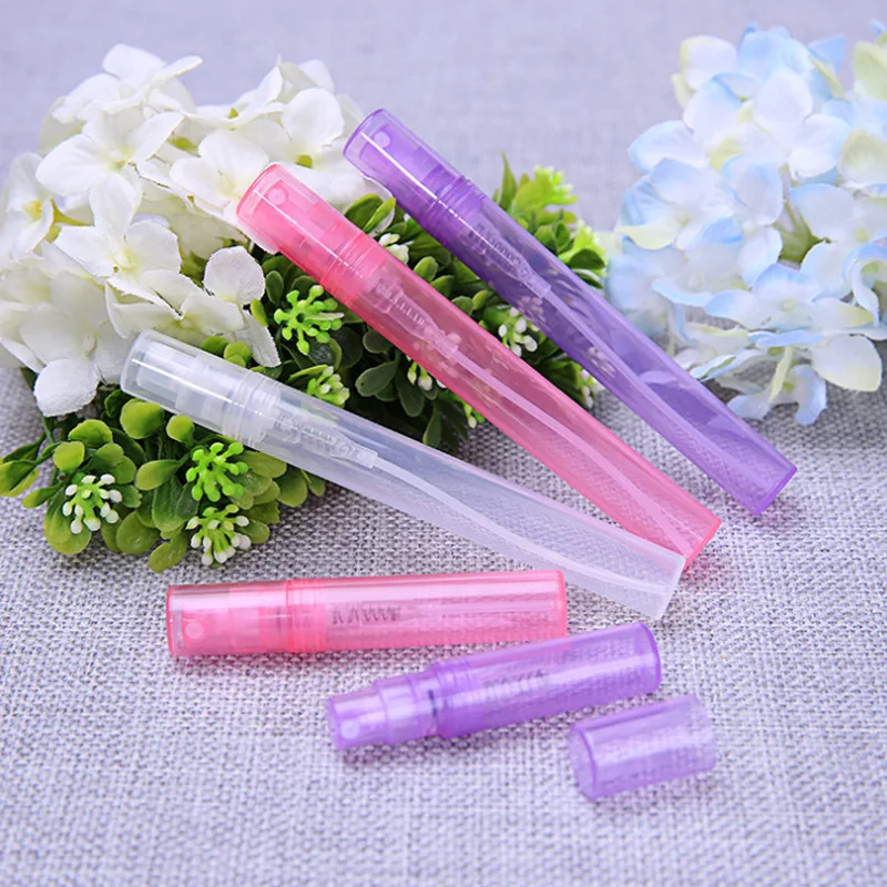 100 шт./лот 2 мл 3 мл 4 мл 5 мл мини пластиковый спрей флакон для духов портативный образец туман подарок распылитель контейнер Женская дорожная бутылка