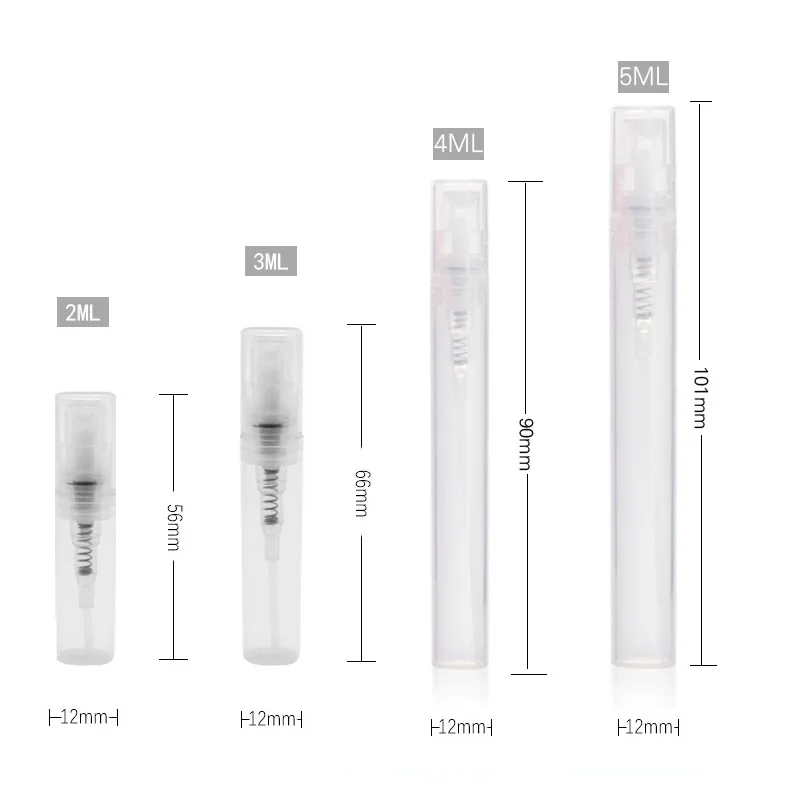 100 шт.лот, 2 мл, 3 мл, 4 мл, 5 мл, мини пластиковый флакон с распылителем для духов, портативный образец, Подарочный распылитель, Женский дорожный флакон