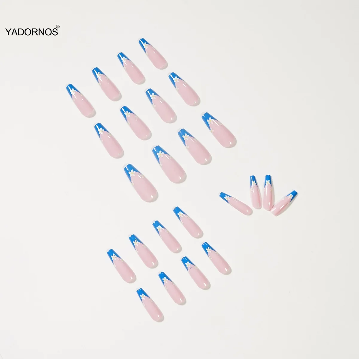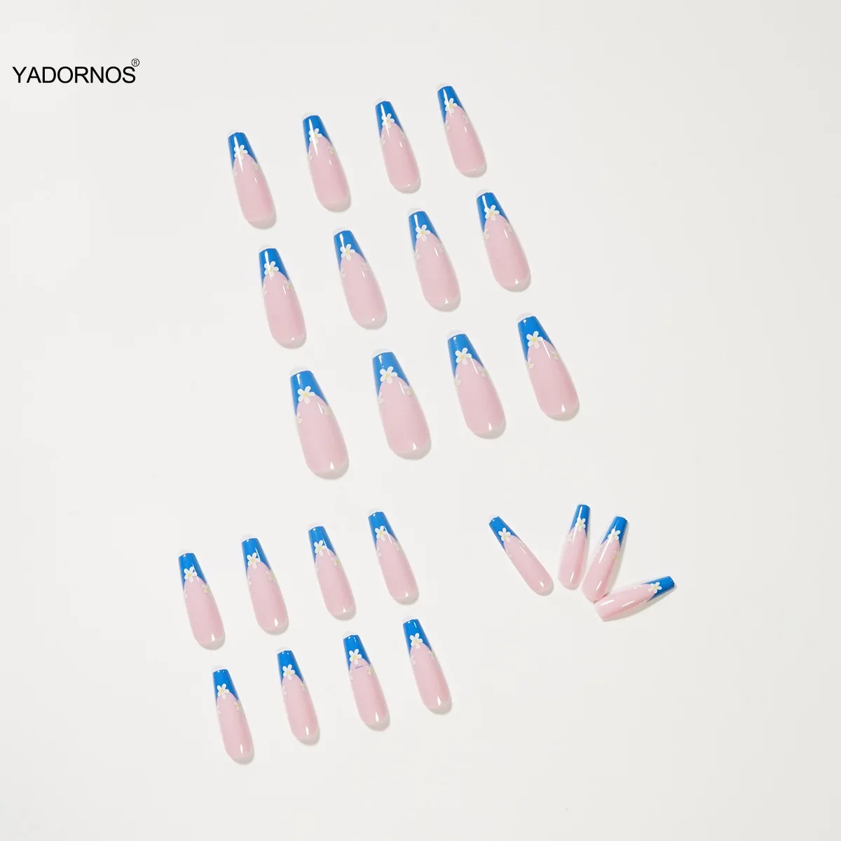 Накладные акриловые ногти с цветочным принтом, 24 шт.