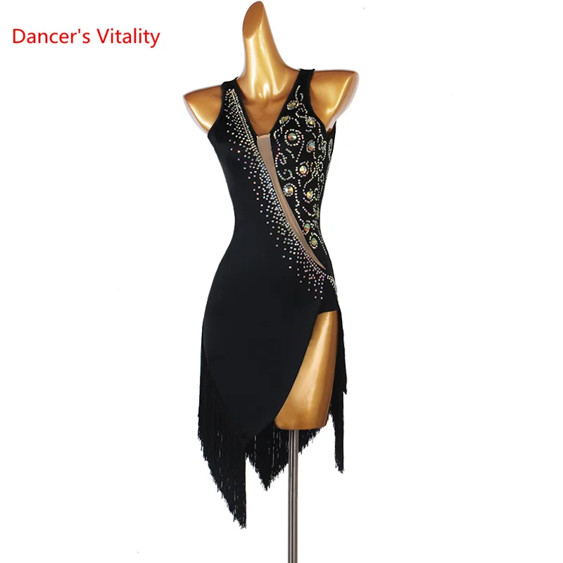 Женское платье для латинских танцев, черное платье для танцев, асси...