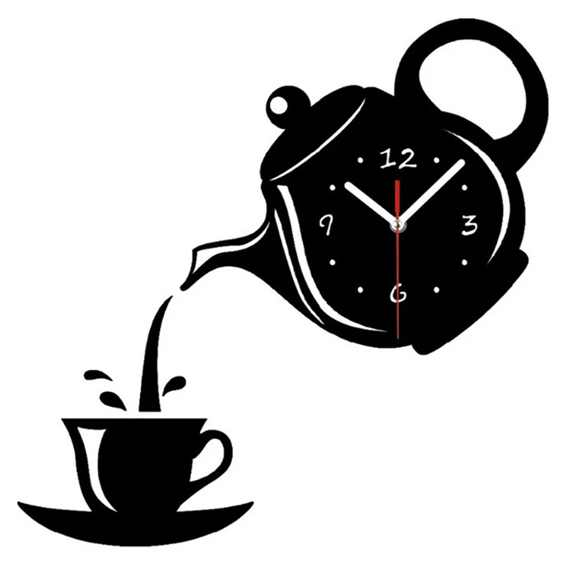 3D настенные часы, акриловые чашки для кофе, чайники, идеальное художественное украшение, современные настенные часы для дома TS1, наклейки для украшения дома