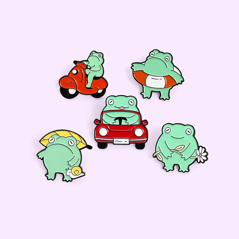 Эмалированная брошь XEDZ Kawaii, лягушка, хризантема, обруч, мотоцикл, лягушка, мультфильм, значки с животными, модные булавки, ювелирные изделия, подарки для детей