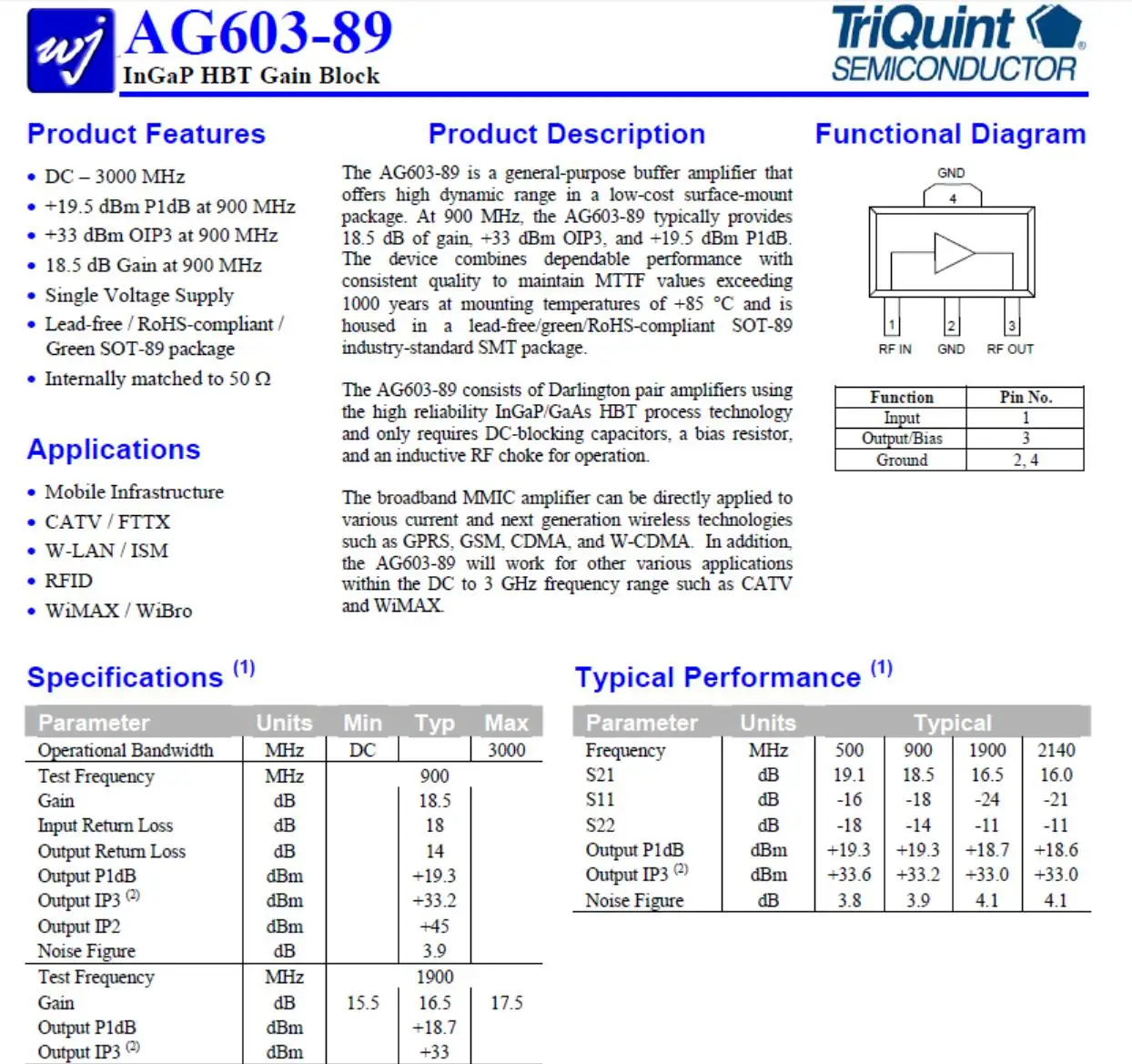 TQP3M9009 50-4000 МГц RF усилитель усиления: 21,8 дБ Высокая линейн...