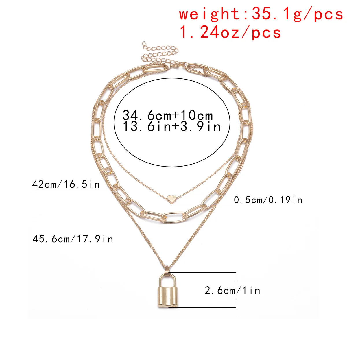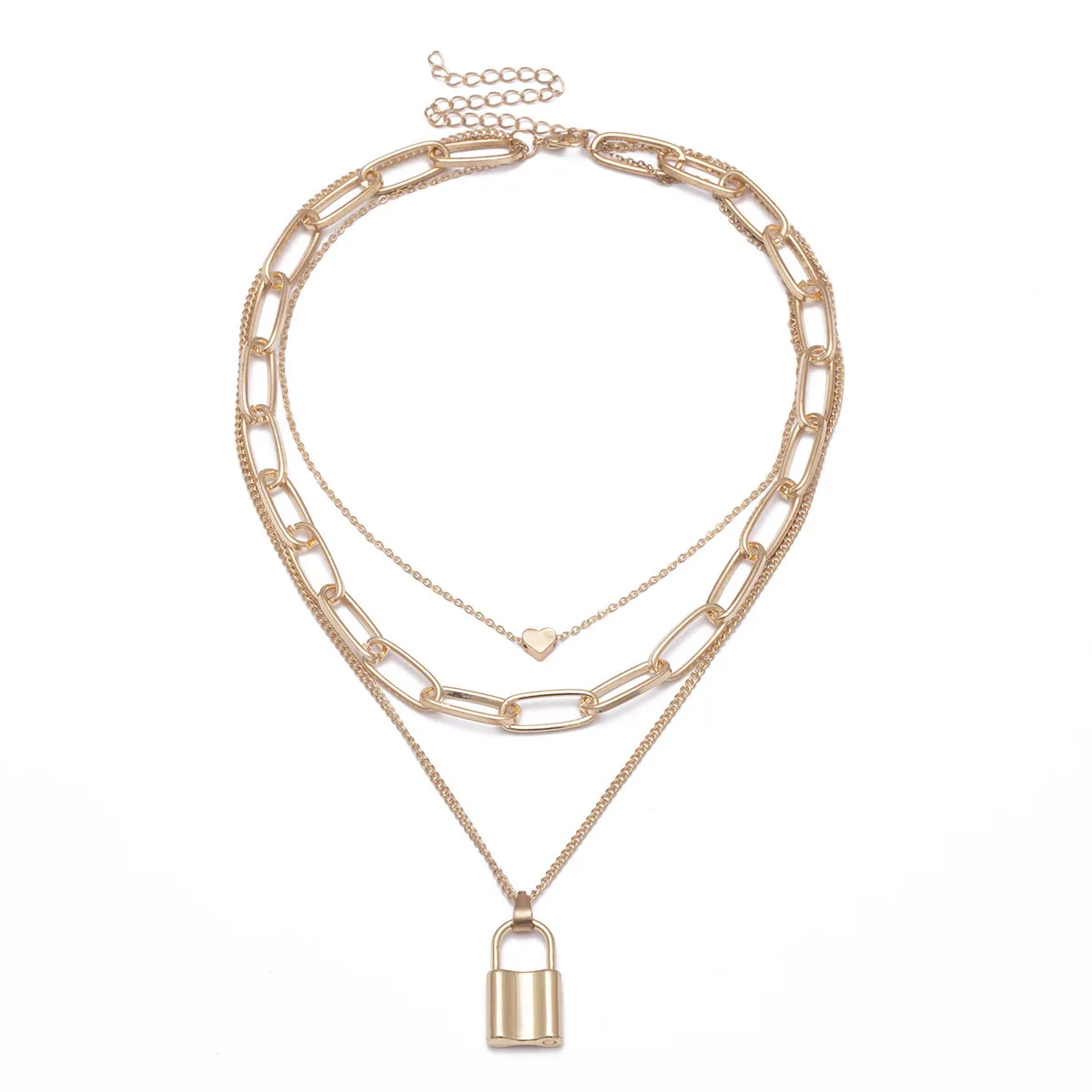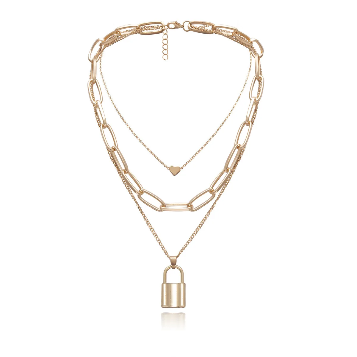 Цепочка многослойная с подвеской в стиле хип-хоп для мужчин и женщин, ожерелье с кулоном в виде висячего замка в стиле панк-рок, гранж и эмо, Ювелирное Украшение в готическом стиле