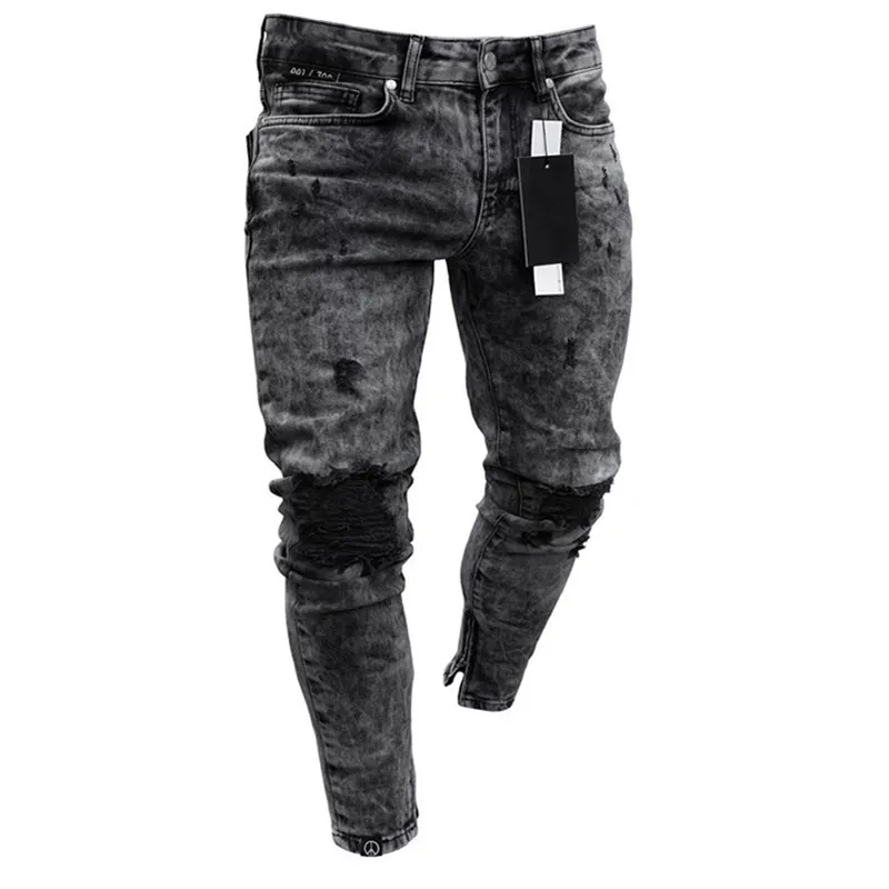 Джинсы мужские рваные в стиле панк, винтажные тонкие брюки в стиле ...
