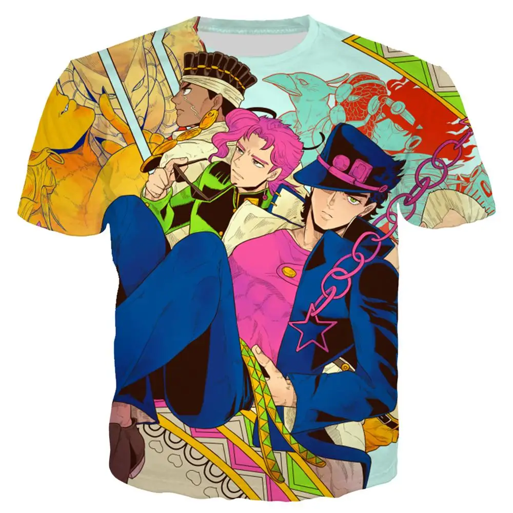 Футболка Мужскаяженская с 3D-принтом аниме, уличная одежда в стиле Харадзюку, топ с коротким рукавом, с Джоджо невероятные приключения