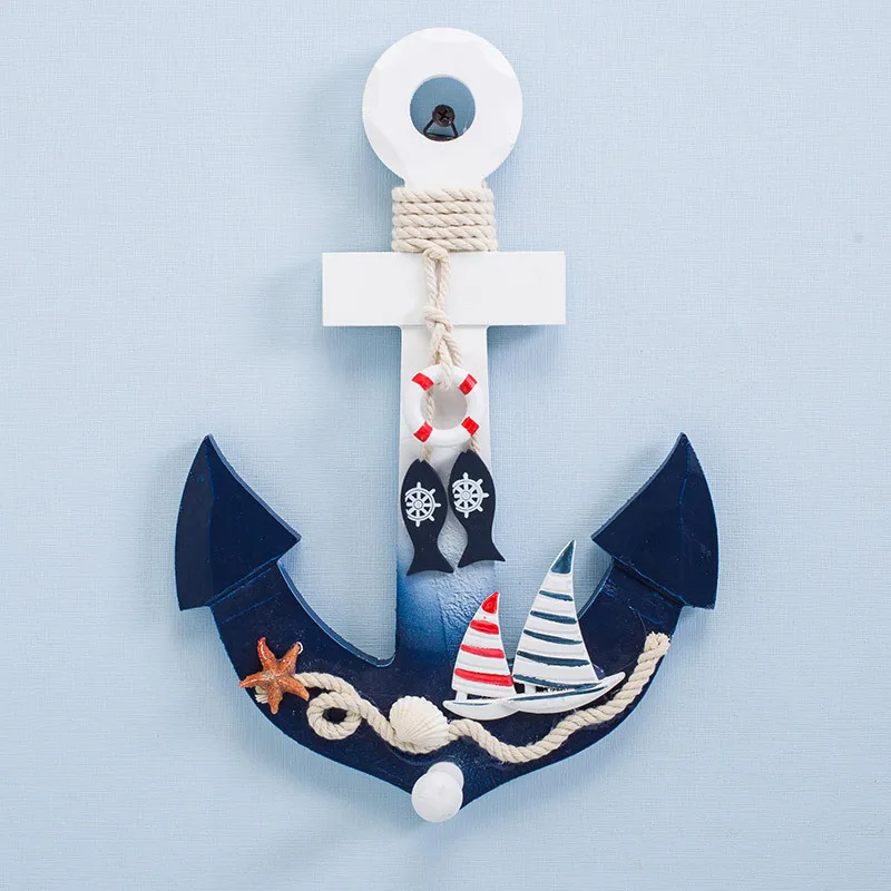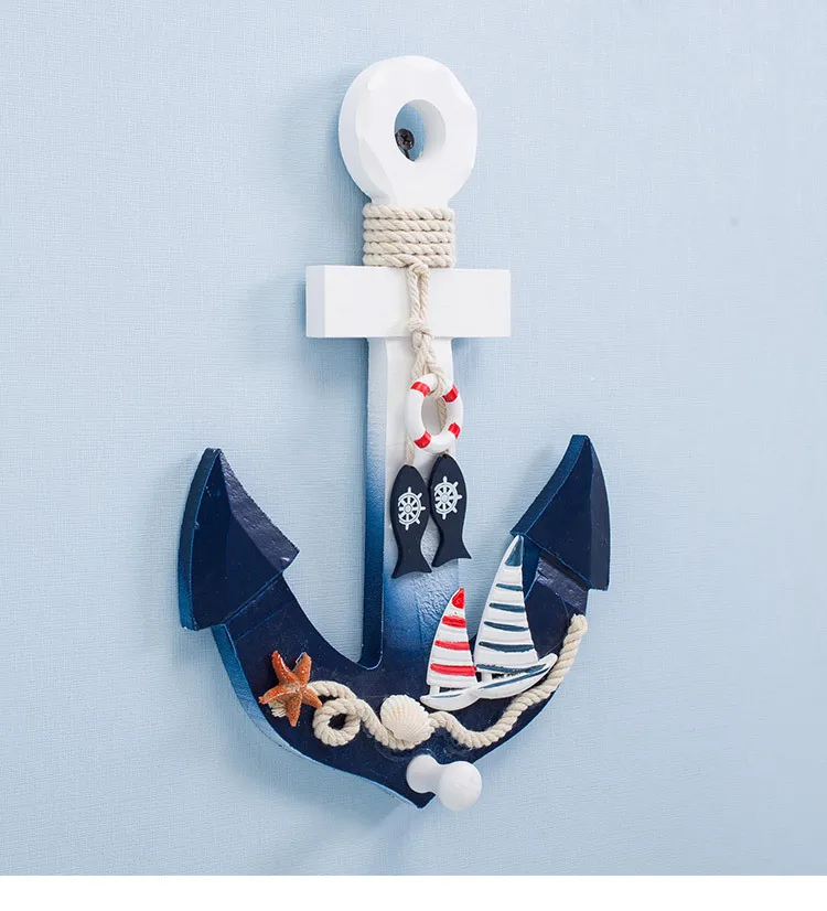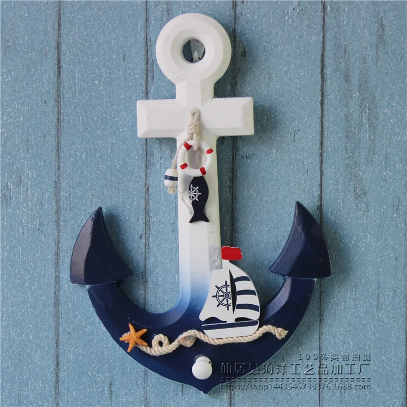 Деревянный якорь с веревкой, Морская Лодка, руль, Настенный декор, ...