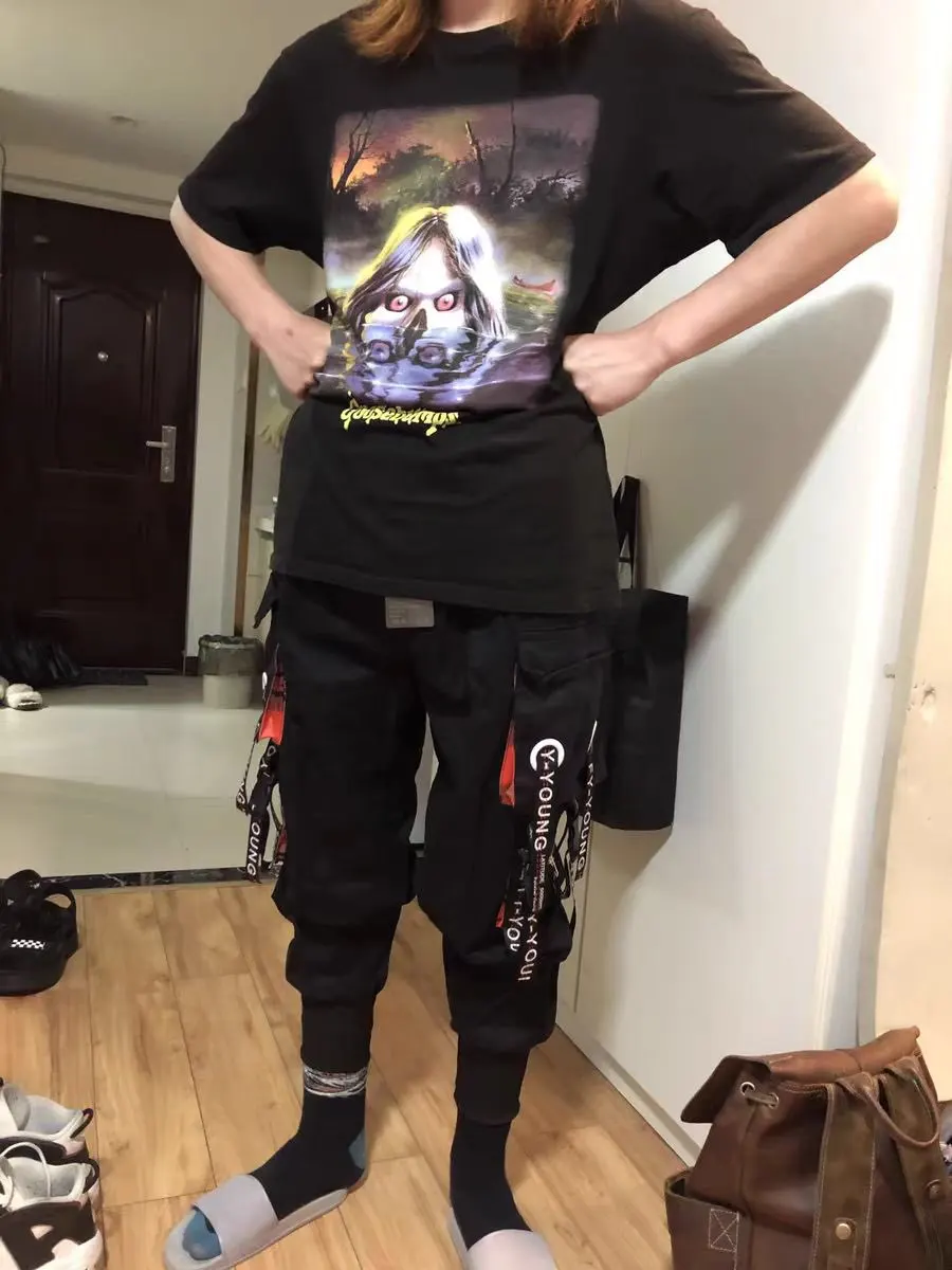 Женские брюки-карго, свободные, черные, широкие, с цепочкой, в стиле хиппи, мешковатые, в уличном стиле, готика, Харадзюку