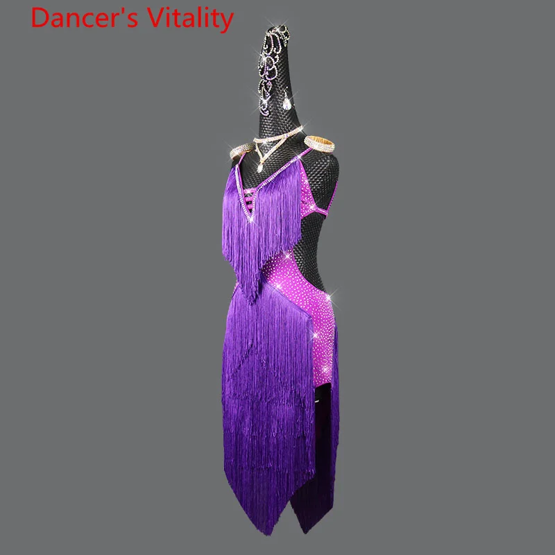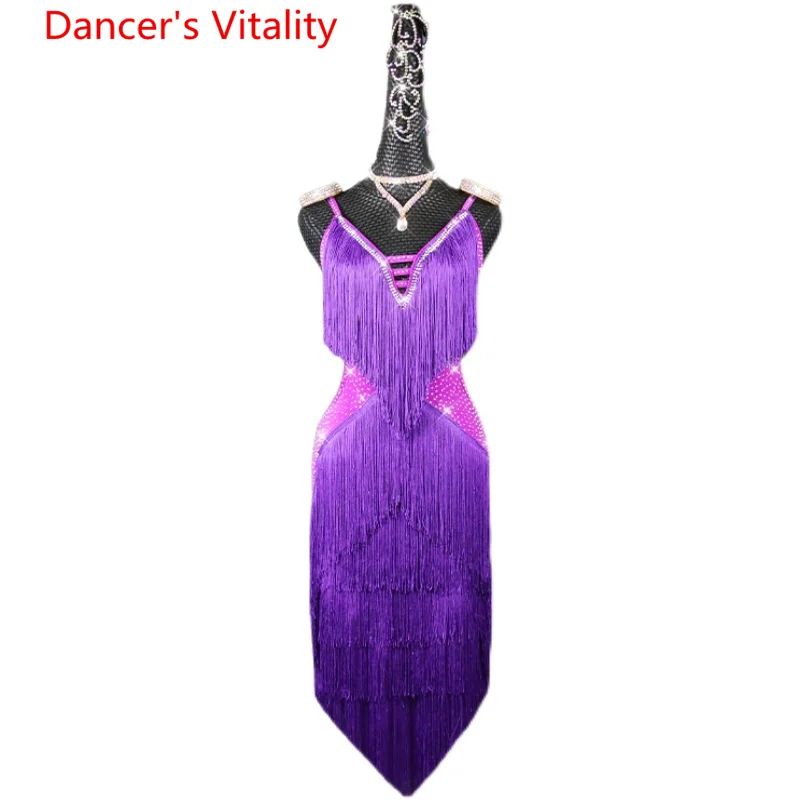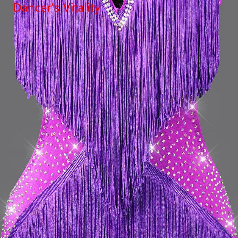Женское платье для латиноамериканских танцев, платье с бахромой и стразами, высококлассная одежда на заказ для взрослых и детей