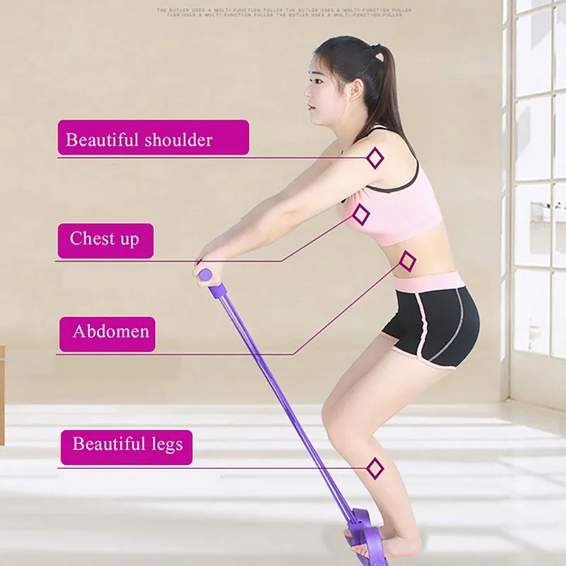 Спортивные Эспандеры для тренажерного зала, оборудование для упражнений, эластичная веревка для вытягивания, для помещений, фотоэкипировка, 4 трубки, Педальный вытягиватель лодыжки