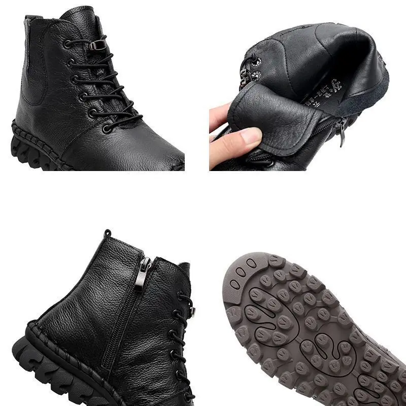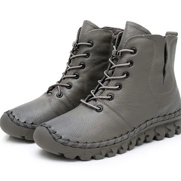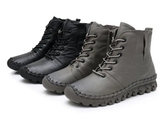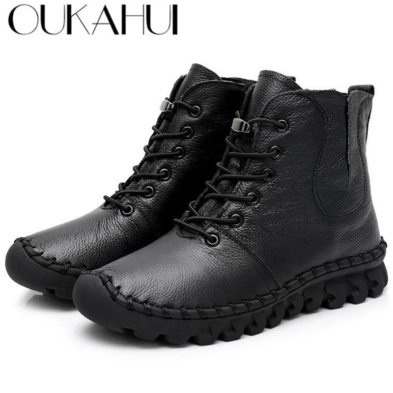 OUKAHUI Осенние Теплые винтажные ботильоны из натуральной кожи для ...