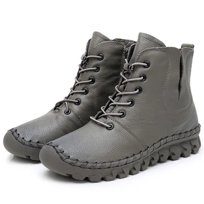 OUKAHUIзимние винтажные теплые женские ботильоны из натуральной кож...