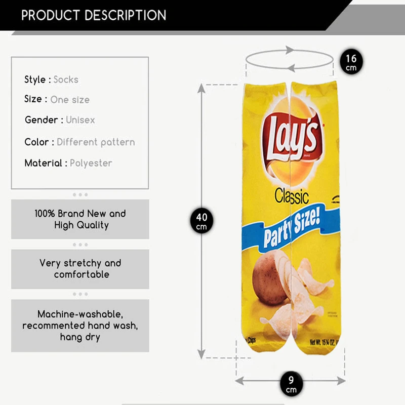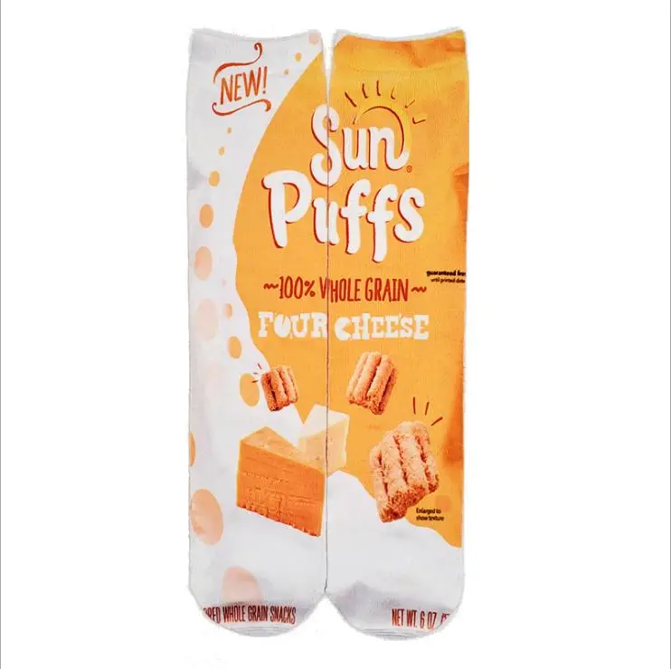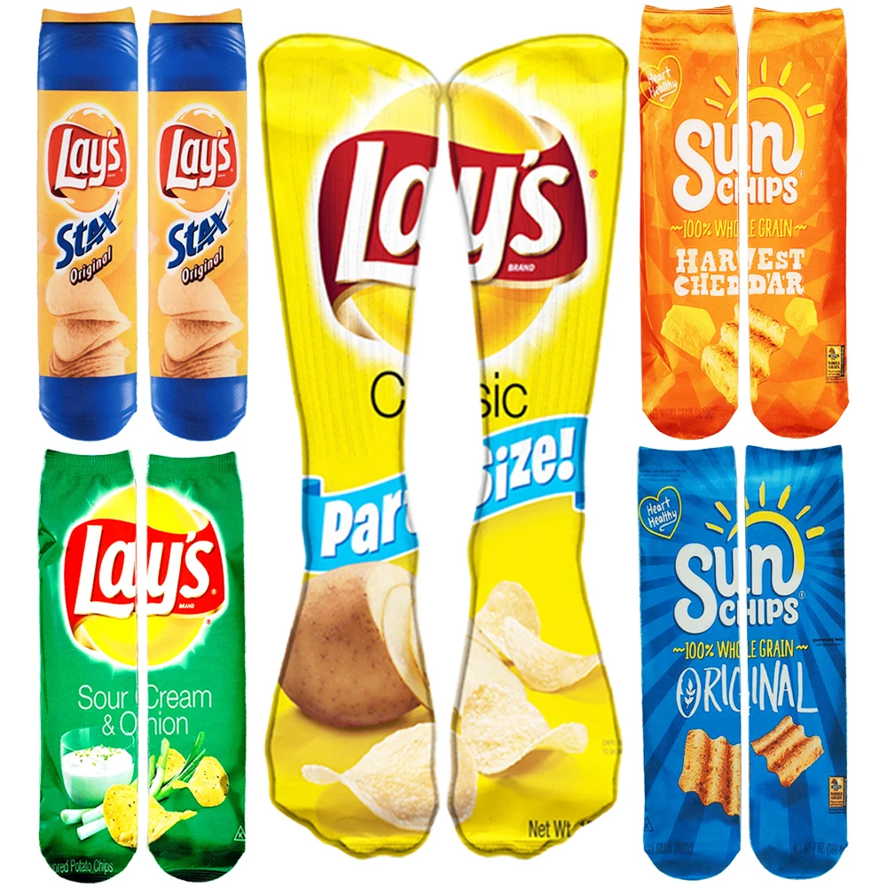 Носки унисекс с 3D принтом, забавные хлопковые носки с принтом воздушных картофельных чипсов и закусок для мужчин и женщин, забавные носки в стиле Харадзюку