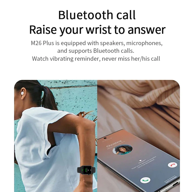 Параметры:Системные требования: android5.0 + / ios10.0 +Мастер-чип: Hs6621Память браслета: 128 мBluetooth для звонков: AB5376A2Bluetooth: версия 5,2Чип сердечного ритма: SC7R30Экран Дисплей: 1,77 inch-Большой Экран 380*320Емкость аккумулятора: 200 мАчМетод кнопки: сенсорный экранДвигатель: круговой двигательПорт зарядки: Беспроводная зарядкаУровень водонепроницаемости: IP67Датчик: g-сенсор 3 осиМестный Циферблат: 4Рынок циферблата: 50 +Стиль меню: 3Приложение: WearFit proЯзык:Язык пользовательского интерфейса: китайский, английский, арабский, французский, немецкий, испанский, португальский, русский, тайский, польский, итальянский, японский, традиционный, чешский, турецкий, греческий, латинский, румынский, вьетнамский, датский,Сообщение: китайский, английский, арабский, французский, немецкий, испанский, португальский, русский, тайский, польский, итальянский, японский, традиционный, чешский, турецкий, греческий, латинский, румынский, вьетнамский, датский,Язык поддержки приложения: "упрощенный китайский, традиционный китайский, английский, французский, немецкий, японский, испанский, итальянский, корейский, русский, тайский, чешский,Португальский, Индонезийский, арабский, турецкий, греческий, эстонский, болгарский, латышский,Литовский, румынский, сербский, Словацкий (24 курса)"Функции:Вызов по BluetoothРынок циферблатовВыключение настройки времени экранаПользовательский компонентГолосовые вызовыШагомерКалорииРасстояниеСпортивный режимПоднимите руку, чтобы осветить экранМониторинг снаВходящий вызовУведомление о сообщенииНапоминание о сидячем положенииНапоминание о тревогеСекундомерНайти браслетПереключатель циферблатаУмный сплит-экран3D динамический циферблатПереключатель ленточного языкаЭкран блокировки паролемКарты социальных звонковМеттВоспроизведение музыкиТренировка дыханияИзмерение почасовой точкиПульсАртериальное давлениеКислород в кровиАнализ усталостиКалькуляторЦиферблат для часов на заказЕженедельник для здоровьяЗатемнениеПогодаУпаковочный лист:1 * оригинальные Смарт-часы M26 Plus1 * Беспроводная зарядка1 * Руководство пользователя1 * оригинальная коробка