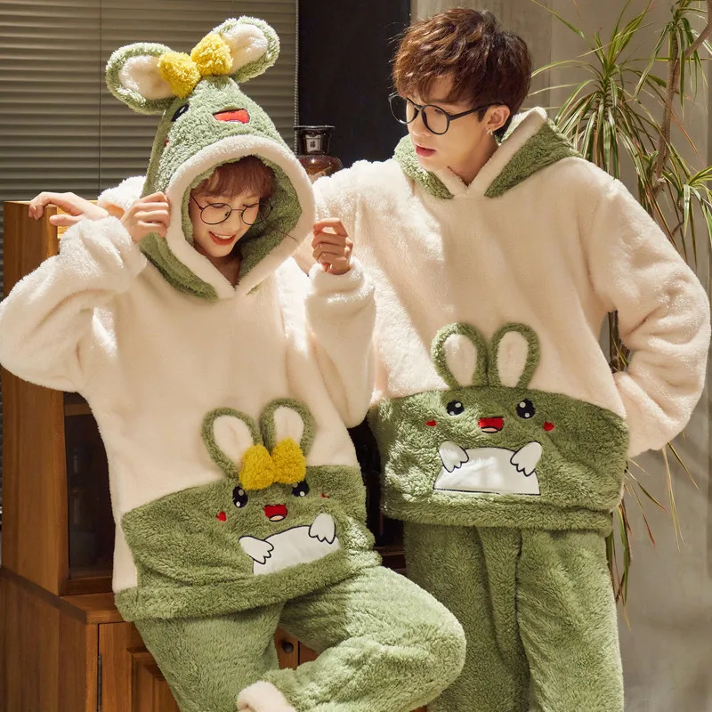 Зимние пижамы унисекс для взрослых, теплые Мультяшные милые пижамы с капюшоном, бархатные утепленные пижамы, фланелевые женские домашние костюмы