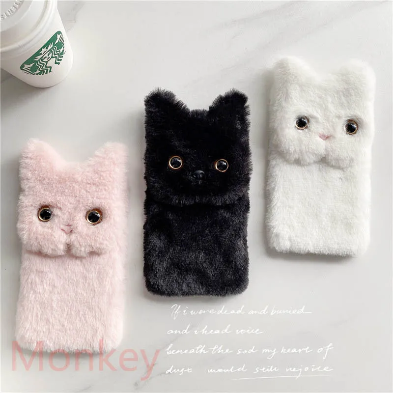 Милый 3D чехол для телефона с котом, плюшевый Меховой чехол для iPh...