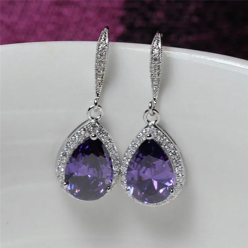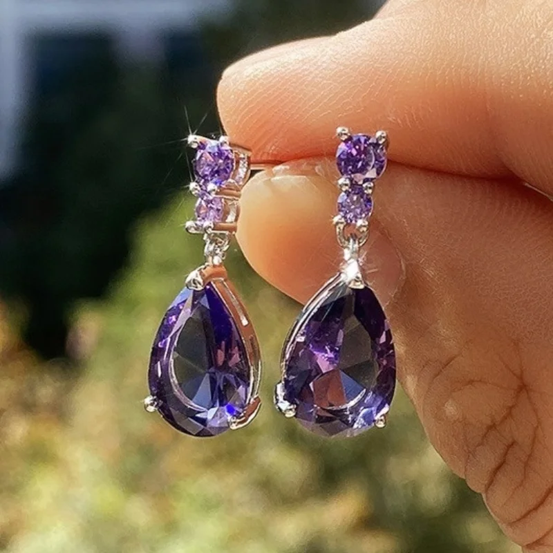 Очаровательные висячие серьги CAOSHI для женщин, ослепительные фиолетовые циркониевые Элегантные Изысканные женские аксессуары для вечерние, модные ювелирные изделия