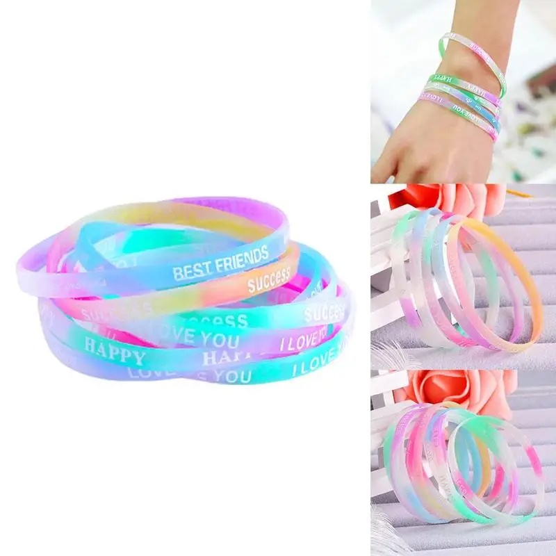 Светящиеся Силиконовые Браслеты 10 шт., модные браслеты с принтом карамельных цветов, модные браслеты для пар с буквами, лучший резиновый браслет Frie E1A8