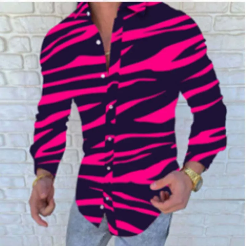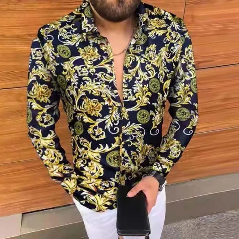 Новая модная мужская рубашка в стиле барокко с лацканами и пуговица...