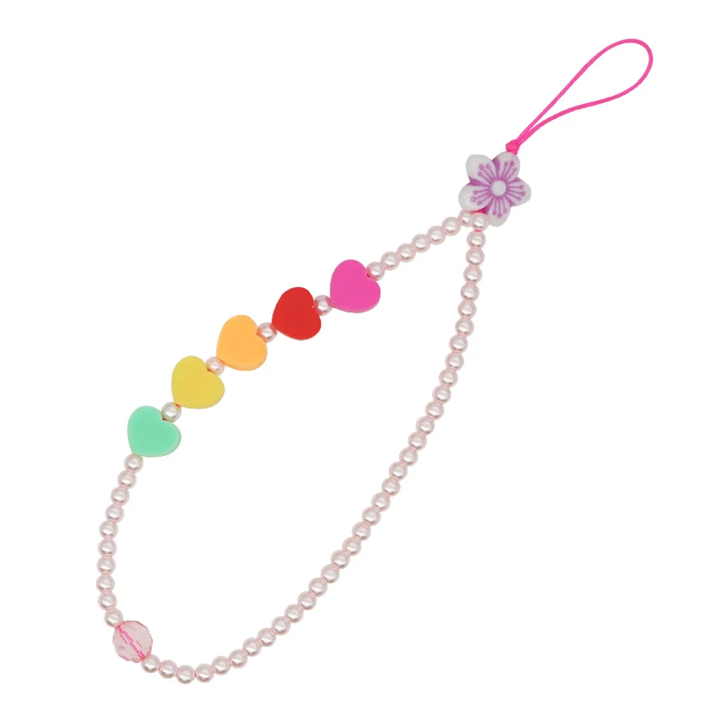 Цветной чехол для телефона с сердцем, цепочка с жемчугом и бусинами, очаровательный шнурок для телефона с защитой от потери, ювелирные изделия для женщин, аксессуары для мобильных телефонов