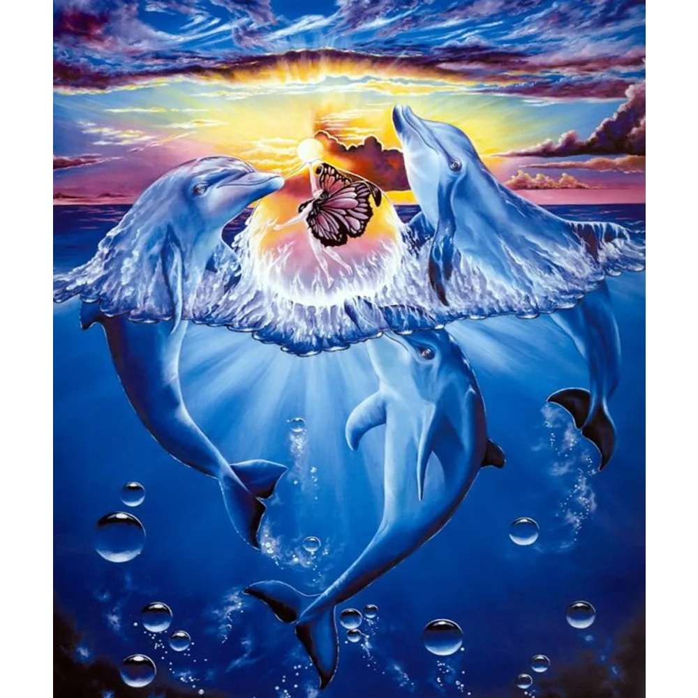 Алмазная живопись, картина 5D, звездное небо, дельфин, вышивка крес...