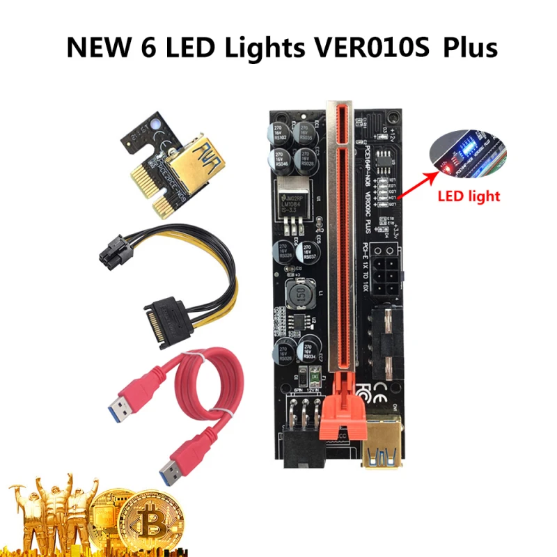 Райзер VER010S PLUS PCI-E 009S PCI Express PCIE 1X To 16X, удлинитель, кабель USB 0,6 3,0 м, SATA на 6 контактов, для видеокарты