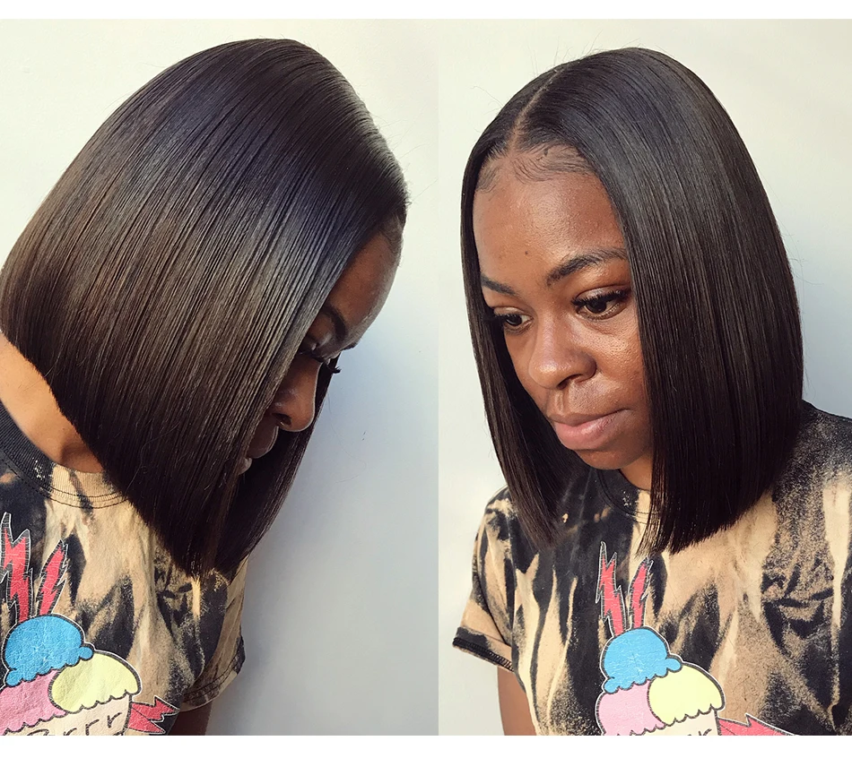 Парик Боб из натуральных перуанских прямых волос с застежкой спереди