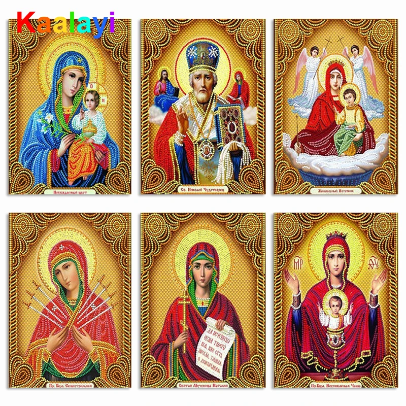 Алмазная картина религиозная Продажа Круглый Полный алмаз Diy мозаика Вышивка Портрет 5D Вышивка крестом украшение дома подарок